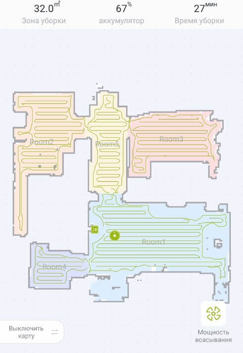 Kalbant apie viso namo navigaciją, „Kyvol Cybovac S31“ automatiškai suskirsto kambarį į zonas ir valo kiekvieną kambarį po kambario, pirmiausia palei perimetrą, o tada vingiuotu būdu. Nėra neišvalytų vietų, o valymo greitis yra didelis, todėl navigacija yra nepriekaištinga.