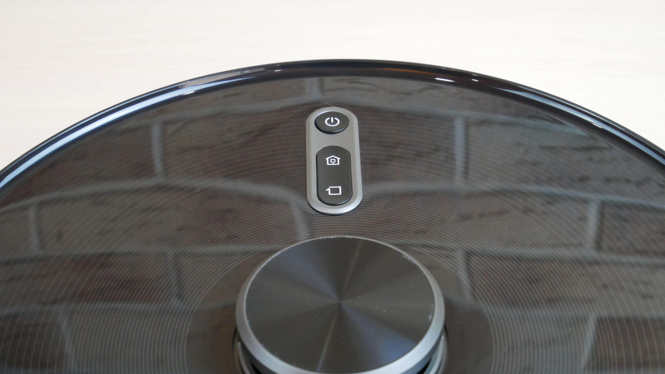 Valdymo skydelyje matome tris mechaninio valdymo mygtukus: paleidimas/pauzė, priverstinis grįžimas į bazę įkrovimui ir vietinio valymo režimo įjungimas.