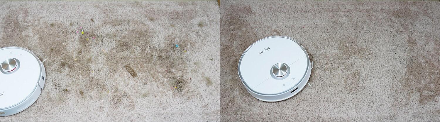 Kalbant apie šlapią kiliminių grindų valymą, „Kyvol S60“ automatiškai nepakelia šluotų, kai jos patenka į kilimą. Todėl galite jį paleisti per visą plotą, leisdami robotui įeiti į kilimus su šlapiomis šluotomis. Arba galite įjungti automatinį kilimų vengimo režimą, kuris greitai aptiks kilimą ir jo išvengs nesušlapindamas šluotų.