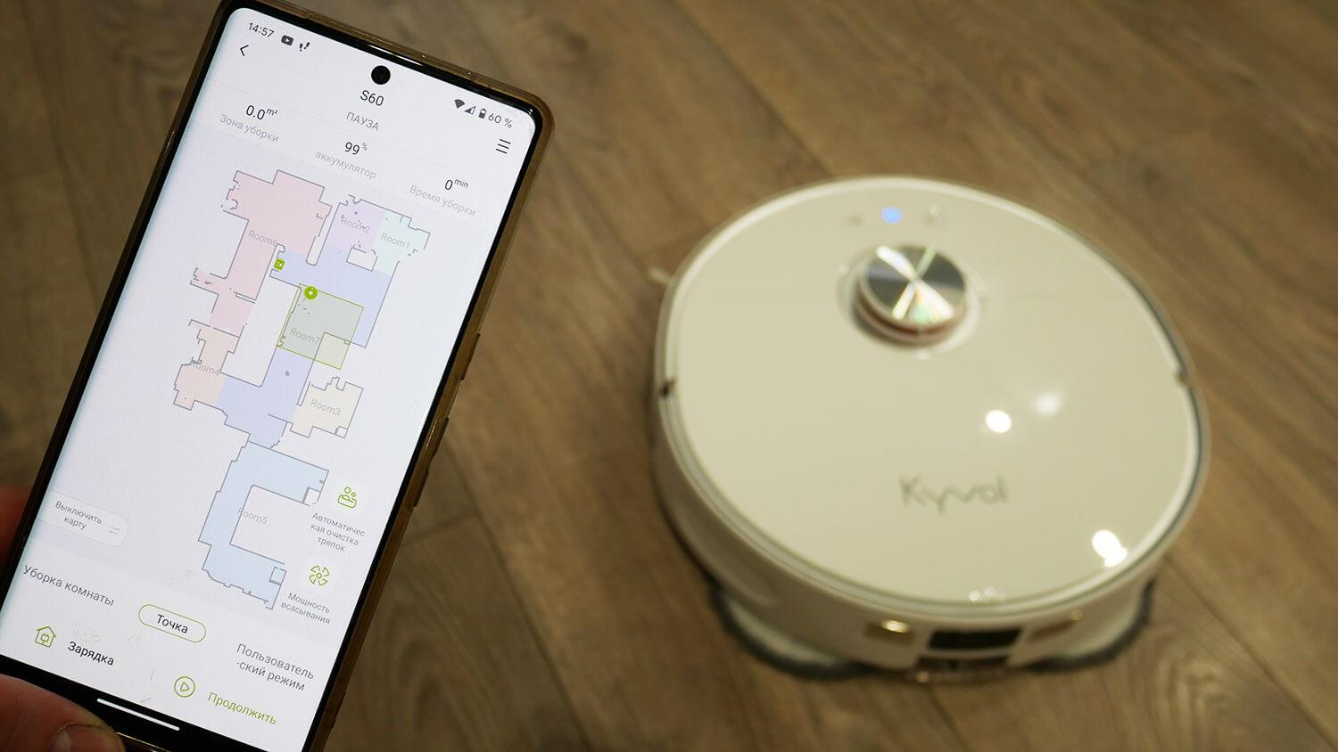 Kalbant apie funkcionalumą, „Kyvol S60“ valdomas per patentuotą „Kyvol“ programėlę. Sąsaja yra rusų kalba ir intuityvi.