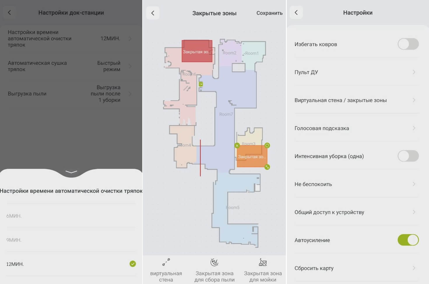 Yra keletas funkcionalumo problemų. Pirma, „Kyvol S60“ turi savo valymo intervalo nustatymo metodą. Galite pasirinkti 6, 9 ir 12 minučių intervalus. Tai ne visada patogu. Pavyzdžiui, kiti prekių ženklai siūlo galimybę plauti valymo pagalvėles po kiekvienos išvalytos vietos arba po pasirinktos valymo vietos. Antra, nėra galimybės reguliuoti pagalvėlių valymo lygio, leidžiant jas būti vos drėgnas arba visiškai drėgnas.