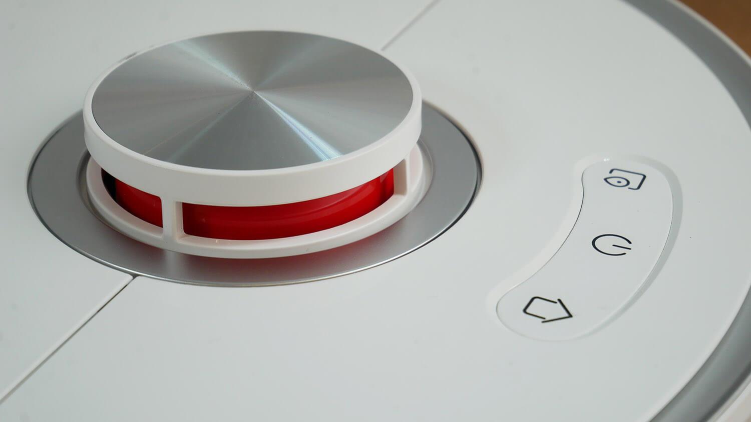 Valdymo pulto viršuje yra trys mechaniniai valdymo mygtukai. Lidaras turi spyruoklinį dangtelį, kad robotas neužstrigtų po baldais.