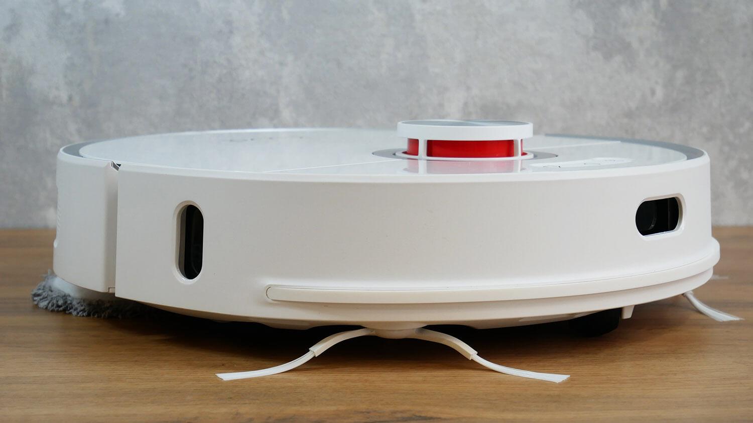 Korpuso apačioje yra keturi apsaugos nuo kritimo jutikliai. Yra du šoniniai šepečiai. Tai nedidelis trūkumas, bet vis tiek pranašumas, palyginti su panašiais gaminiais. Šalia besisukančio volelio yra kilimo aptikimo jutiklis. Tai yra pliusas.