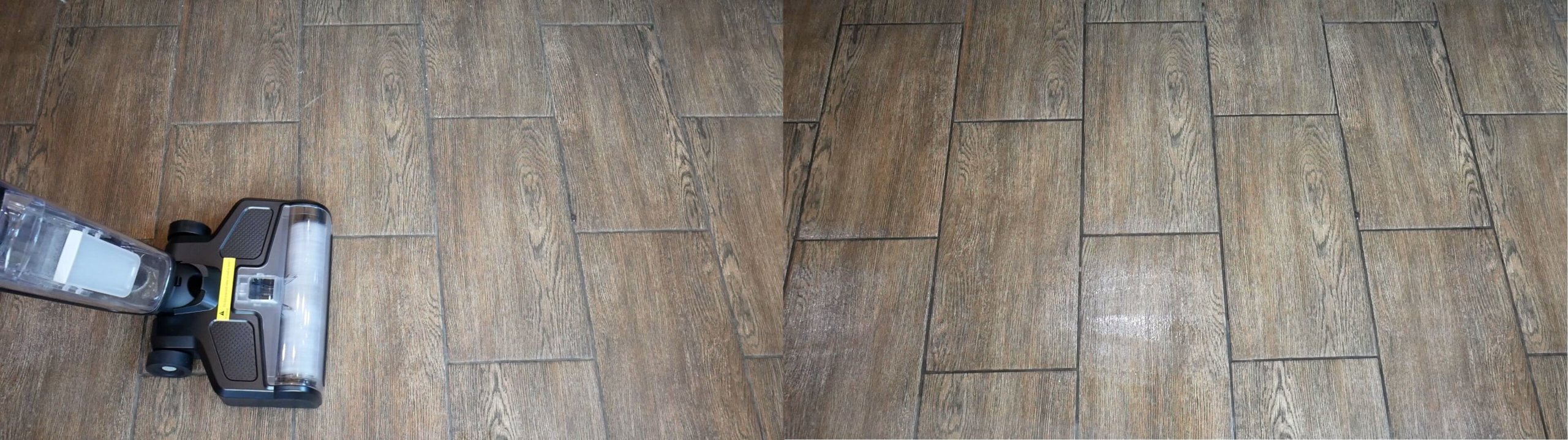 Vanduo per daug neužlieja grindų, net jei vandens srovę padidinate mygtuku ant rankenos. Nepalieka dryžių ar balų, o tai yra privalumas.