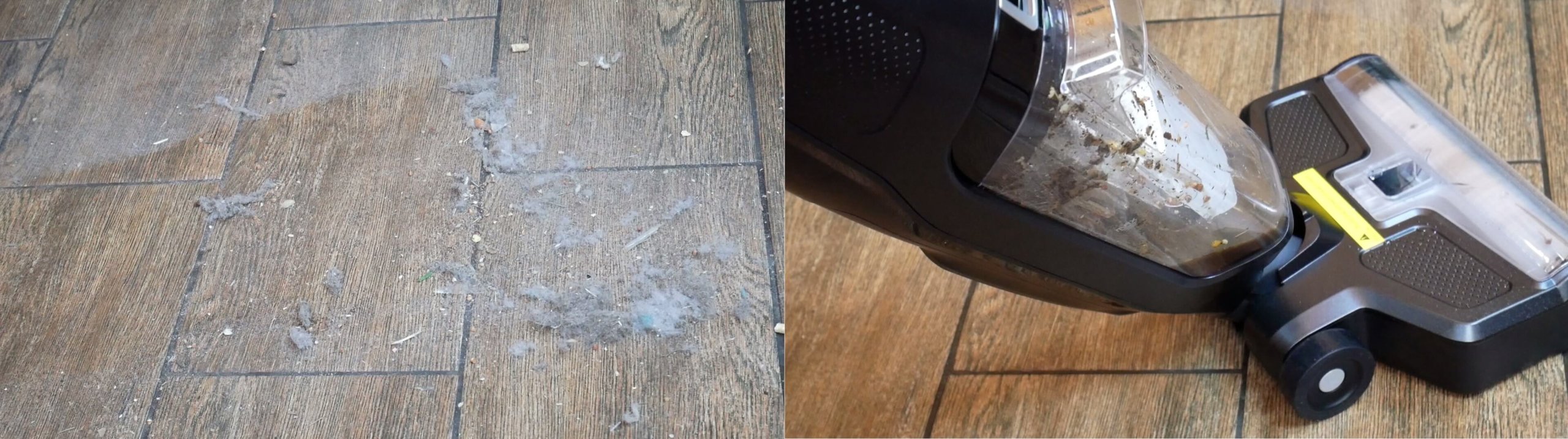 Dar svarbiau išbandyti, kaip efektyviai šis rankinis dulkių siurblys valo grindis ir pašalina nešvarumus. Bus atlikta keletas bandymų – nuo paprastų iki sudėtingesnių.