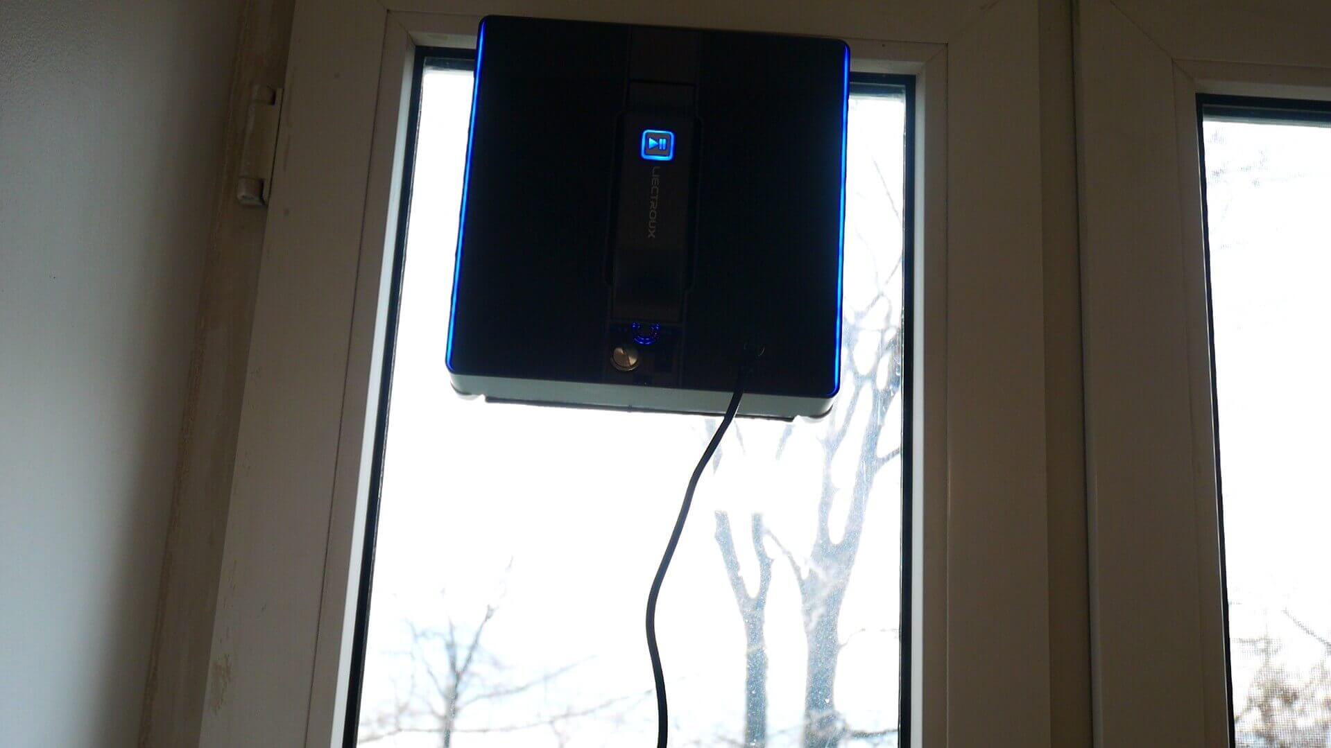 Galiausiai parodysiu, kaip „Liectroux WS-1080“ elgiasi atjungtas nuo elektros tinklo. Pavyzdžiui, jei jūsų bute dingsta elektra, kai robotas valo langą, mirksės paleidimo / pauzės mygtukas ir pasigirs garsinis signalas. Šiuo režimu robotas gali likti ant lango iki 20 minučių – to pakanka problemai aptikti ir greitai ją pašalinti.
