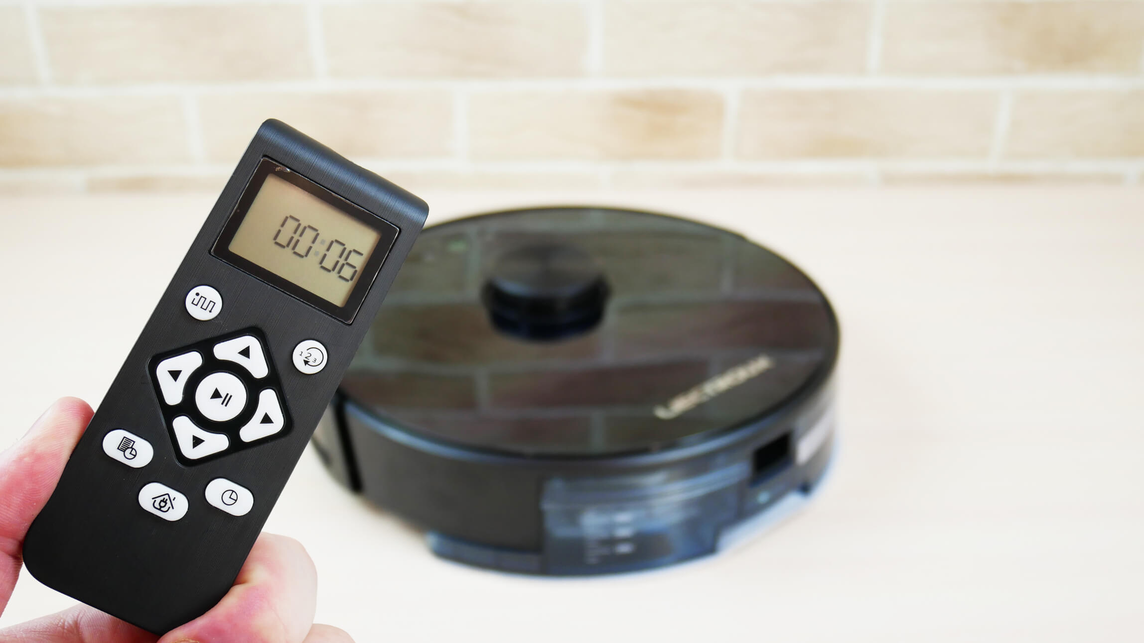 Nuotolinio valdymo pultas dubliuoja tokias funkcijas kaip automatinis valymo režimas, galios valdymas, rankinis valdymas, paleidimas / pristabdymas, valymo grafiko nustatymai, dabartinio laiko nustatymas ir priverstinis grįžimas į įkrovimo stotelę. Nuotolinio valdymo pultas yra gera alternatyva, jei namuose nėra „Wi-Fi“ arba vartotojui programėlė atrodo nepatogu.