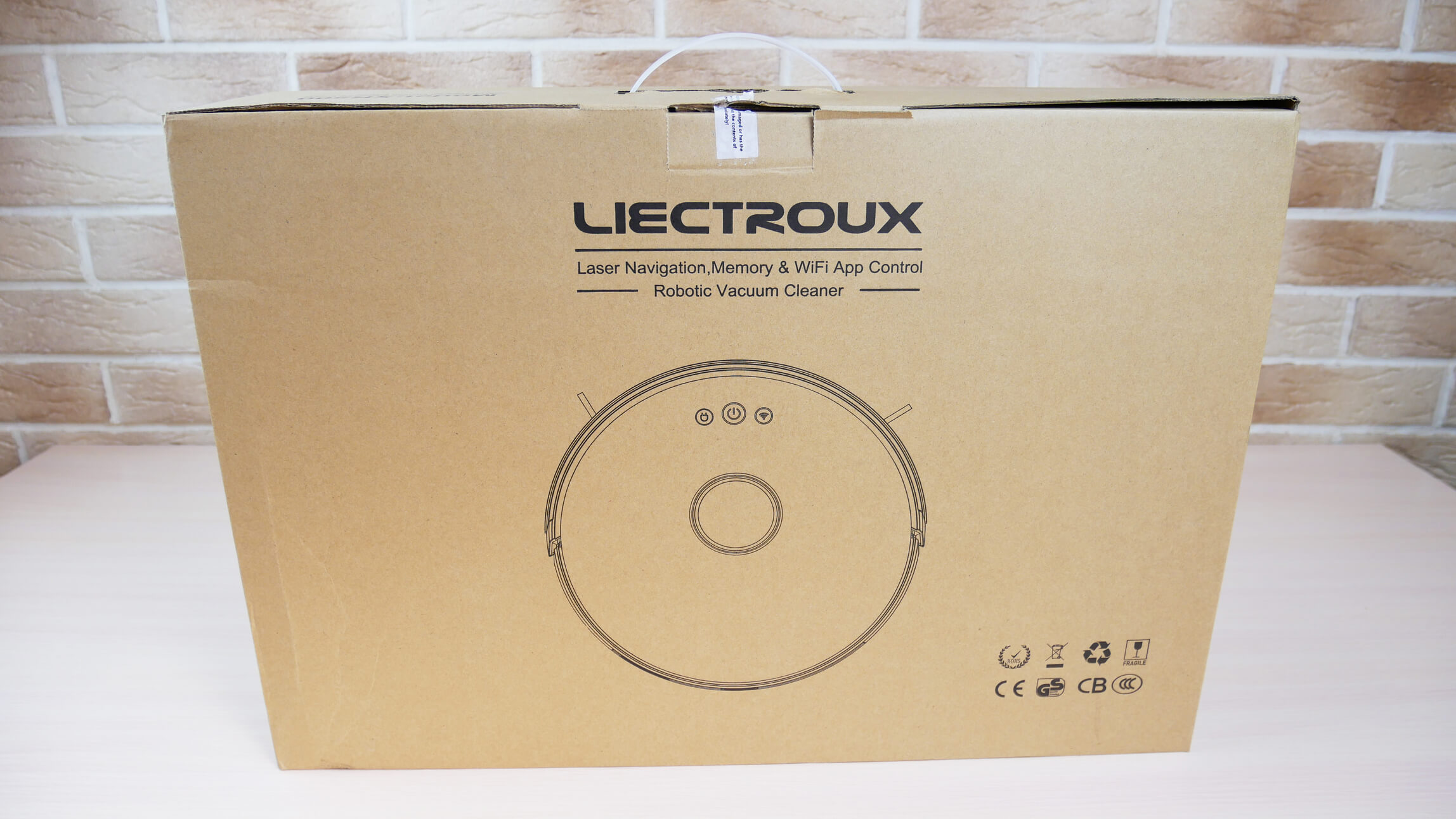 Robotas dulkių siurblys atkeliavo firminėje kartoninėje dėžutėje, tokioje kaip ši: