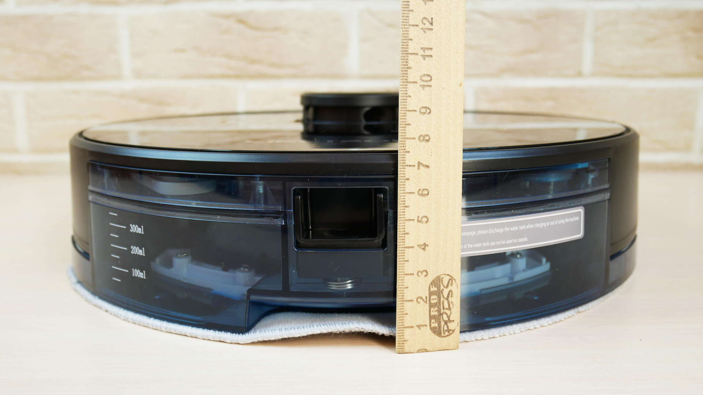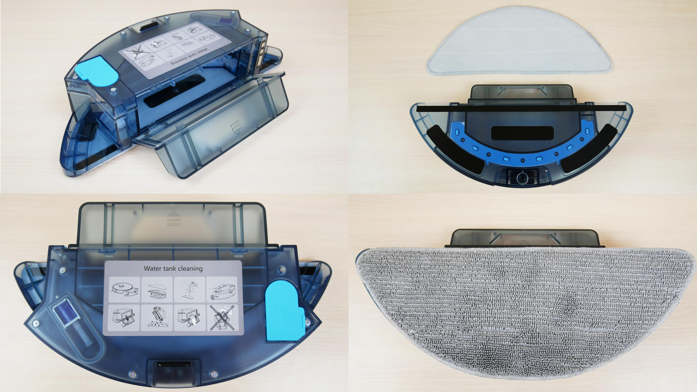Vietoj dulkių surinktuvo galima įmontuoti vandens baką. Jame yra siurblys, skirtas elektroniniu būdu reguliuoti šluostės drėgnumą. Bake telpa iki 350 ml vandens. Taip pat yra nedidelis atliekų surinkimo skyrius. Įdiegus vandens baką, robotas dulkių siurblys tik šluoja; jis nesiurbia, todėl turėkite tai omenyje. Šluostė prie bako pagrindo tvirtinama lipnia juosta. Vanduo išleidžiamas per šešias skylutes su dozatoriais.