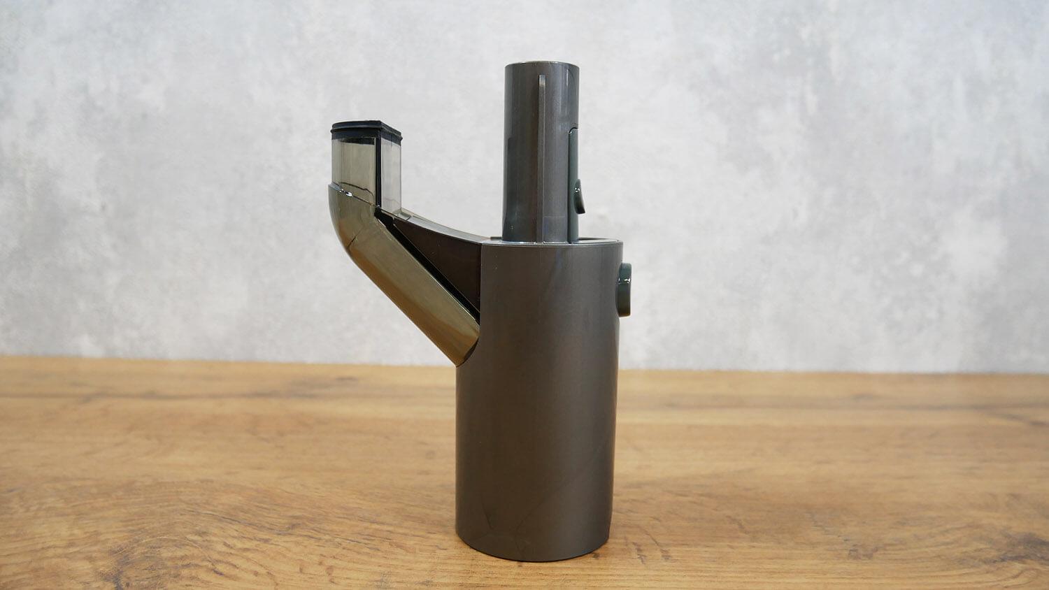 Galiausiai parodysiu, kaip išvalyti dulkių konteinerį. Norėdami tai padaryti, pirmiausia atjunkite jungtį su antgaliu nuo pagrindinio įrenginio. Uždėkite dulkių konteinerį ant šiukšliadėžės ir paspauskite mygtuką. Visos šiukšlės iškrenta per dugną. Augintinių plaukai gali įstrigti filtravimo sistemoje. Tokiu atveju turėsite juos išimti rankiniu būdu ir iškratyti likusias šiukšles. Tai nėra labai patogu, nes turėsite liesti nešvarias dulkių siurblio dalis rankomis.