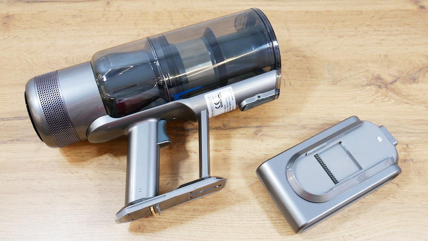 Dulkių surinktuvas atsidaro ir ištuštėja paspaudus mygtuką. Deja, pats dulkių surinktuvas nėra nuimamas. Galima nuimti tik filtravimo sistemą, kurią sudaro HEPA filtras, ciklonas ir tinklelis.