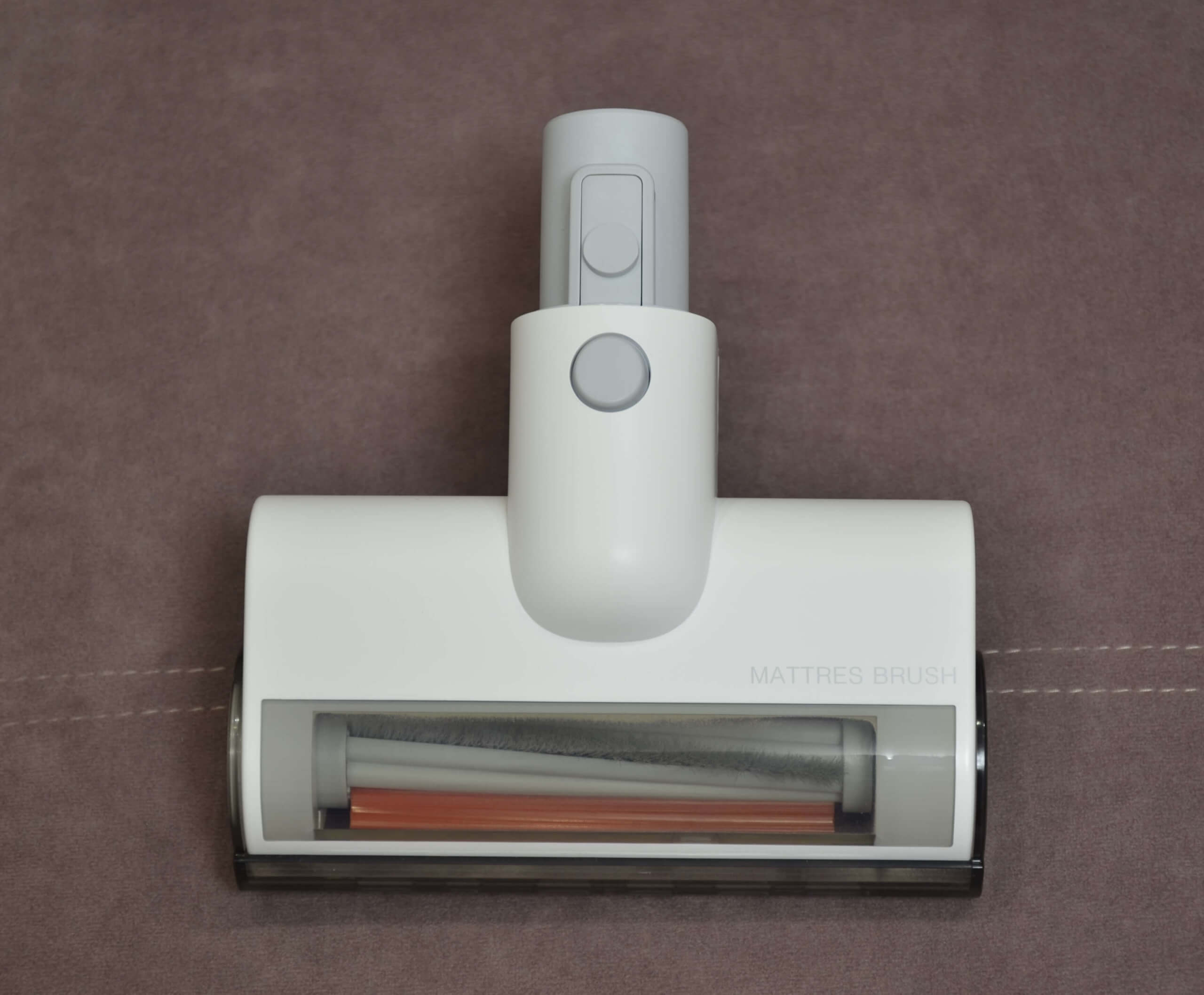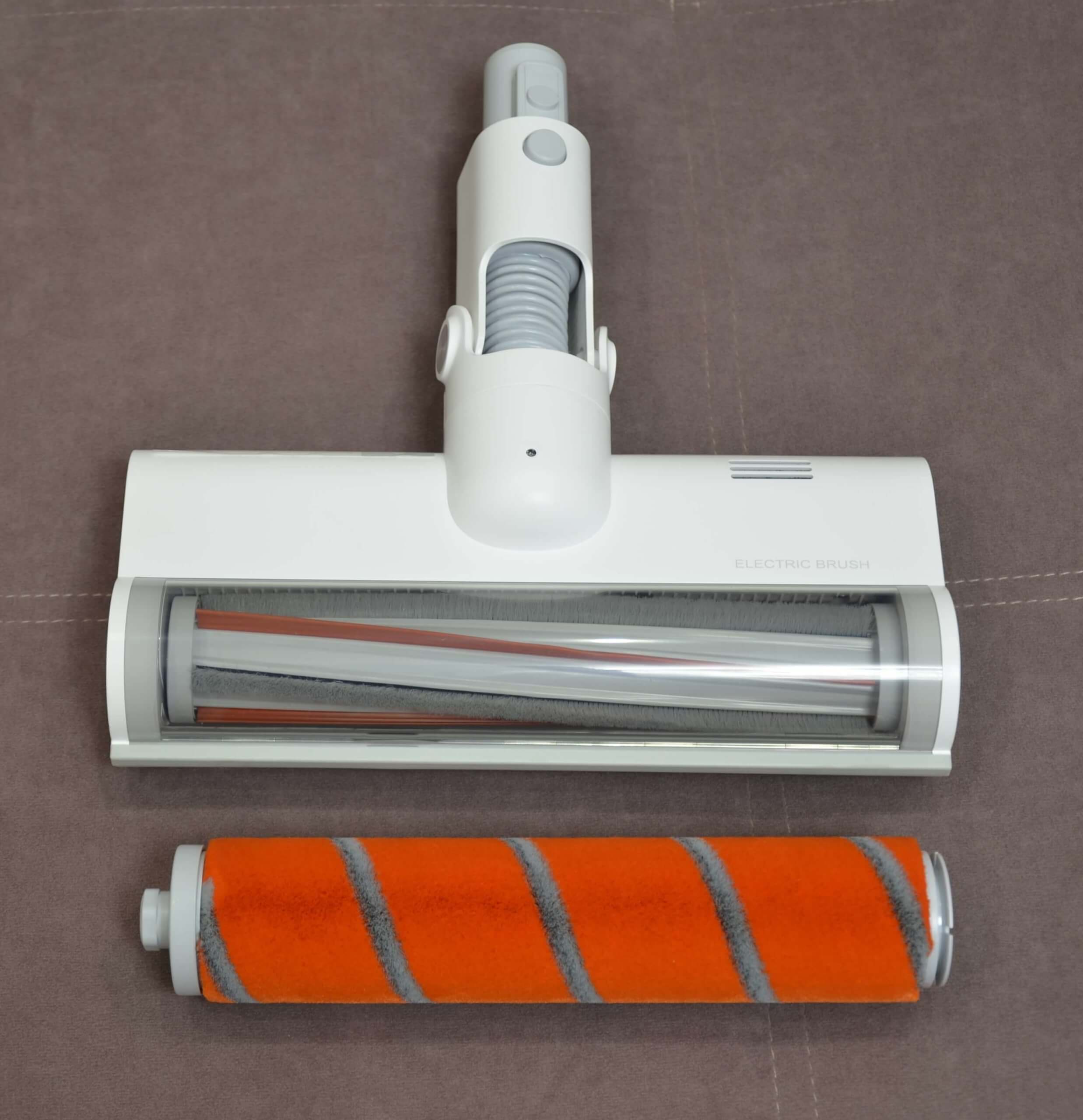 Pats pagrindinis antgalis turi pasukamą jungtį, kuri pagerina manevringumą naudojimo metu. Viršutinio šepečio centre sumontuotas šviesos jutiklis, kuris neleidžia priekiniam apšvietimui įsijungti esant ryškiam apšvietimui. Tai leidžia dulkių siurbliui taupyti akumuliatoriaus veikimo laiką. LED foninis apšvietimas yra gana ryškus. Priekinis šepetys turi guminį buferį, kuris apsaugo baldus ir patį dulkių siurblį nuo pažeidimų. Skaidrus korpuso viršus leidžia stebėti šepečio būklę ir greitai pašalinti susivėlusius plaukus ir kailį. Apačioje sumontuoti trys voleliai, leidžiantys šepečiui sklandžiai slysti grindimis, nesubraižant paviršių.