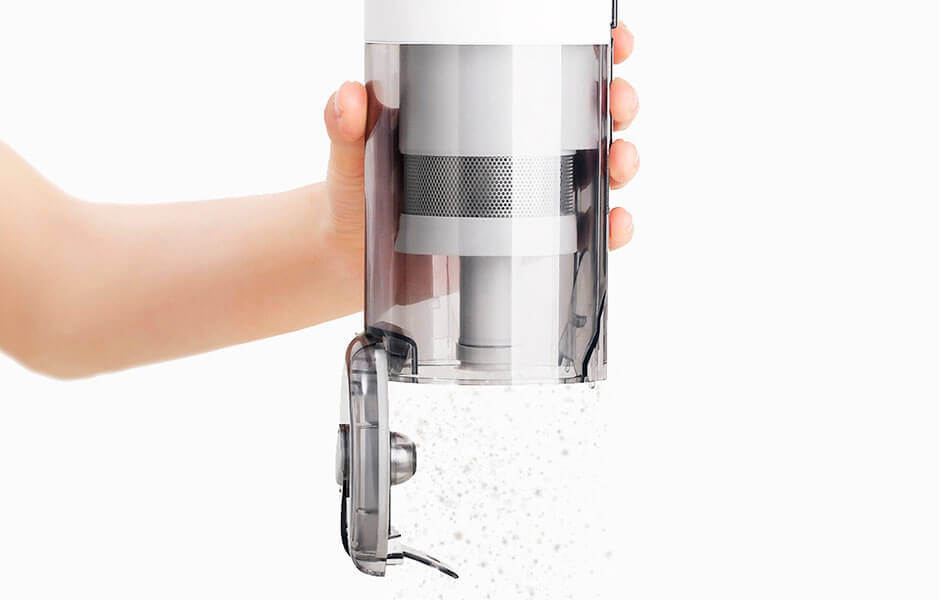 Dulkių ir šiukšlių surinkimo konteineris išimamas paspaudus mygtuką. Jo jungtyje su varikliu yra sandariklis. Siurbimo anga taip pat turi guminę tarpinę. Norėdami išardyti konteinerį, pirmiausia nuimkite filtrą. Tada nuimkite filtravimo sistemą ir iškratykite kolbos turinį. Pačią kolbą galima nuplauti vandeniu; tačiau prieš vėl įmontuodami būtinai išdžiovinkite visas dalis.