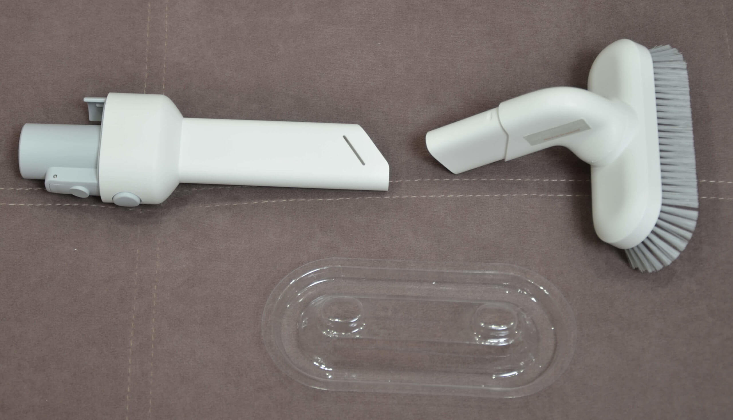 Yra plyšių valymo antgalis su nuimamu šepečiu. Šis įrankis patogus siurbti baldus, automobilių salonus ir, pavyzdžiui, klaviatūras.