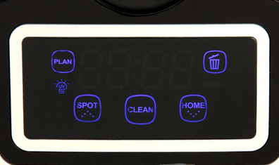 Greitai žvilgtelėjus į priekinį skydelį, matyti ekranas su jutikliniais mygtukais. Ekrane rodomas roboto veikimo režimas ir laikas. Paspaudus mygtukus, pasigirsta tylus spragtelėjimas. Ekrano išvaizda parodyta žemiau: