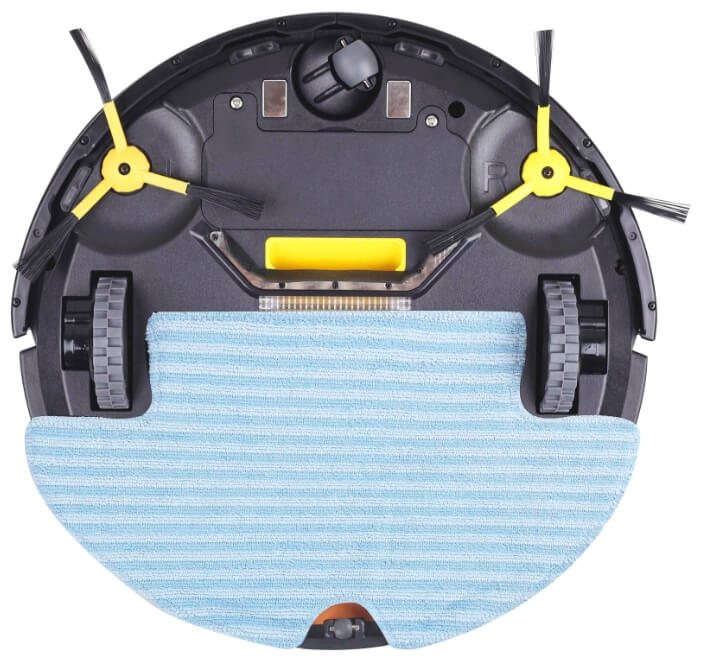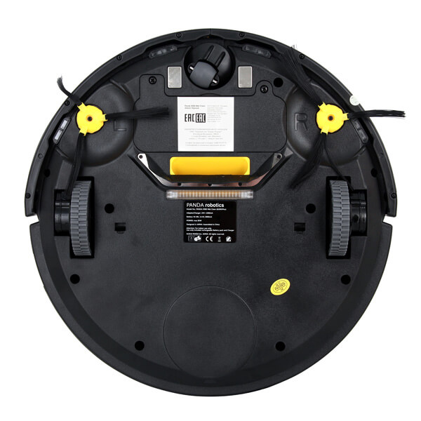 Žvelgiant iš įrenginio apačios, matyti du varomieji ratai, šoniniai šepečiai ir dulkių surinktuvas. „Panda X900“ robotas-dulkių siurblys taip pat turi aukščio jutiklius ir kliūčių aptikimo sistemą palei dugno perimetrą. Be to, apačioje sumontuota UV lempa valomam paviršiui dezinfekuoti. Kadangi lempa yra nuimama, ją galima lengvai bet kada pakeisti.