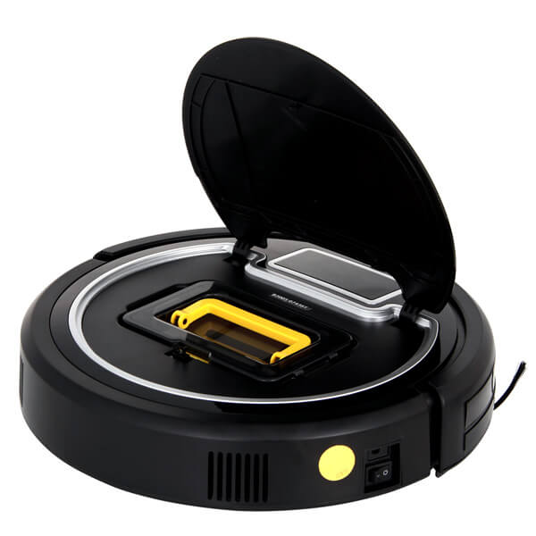 Dulkių skyriaus dangtelis užima beveik visą roboto korpuso priekį. Paspaudus, šis dangtelis atlenkiamas į viršų, atidengdamas dulkių konteinerį. Atidžiau pažvelgus į šį konteinerį, galima pamatyti dulkių konteinerį, kurį galima lengvai išimti iš roboto patraukus specialią rankeną. Kad šiukšlės neišsibarstytų iš dulkių konteinerio, konteinerio viduje sumontuotas specialus dangtelis.