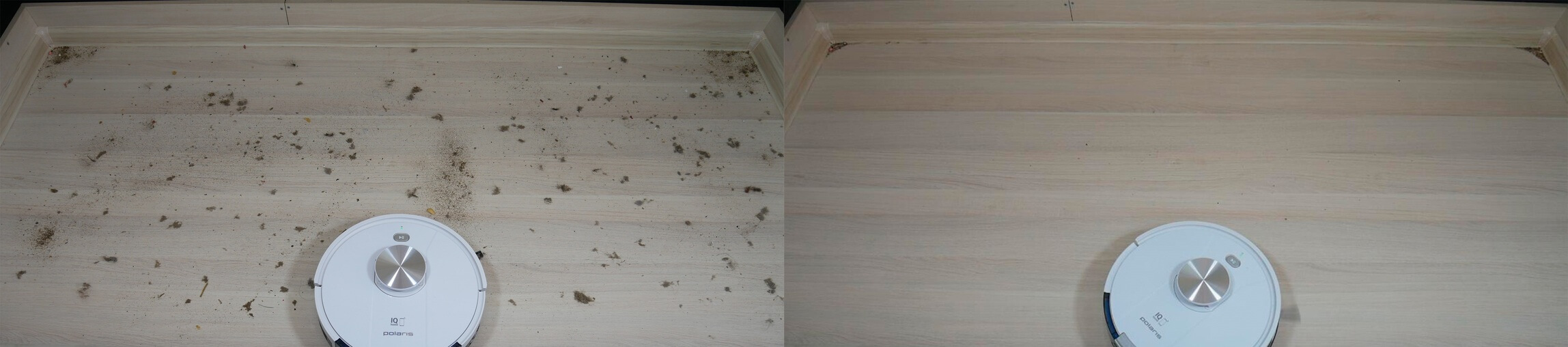 Kalbant apie nešvarumų šalinimą, „Polaris PVCR 3900 IQ Home“ maloniai nustebino. Šluostė tvirtai priglunda prie grindų, o vandens srovė yra gausi, todėl robotas dulkių siurblys gali pašalinti net pridžiūvusius nešvarumus. Kaip ir kiti robotai, dėl savo konstrukcijos ypatybių jis negali išvalyti siauros juostos palei grindjuostę. Bet kokiu atveju, jis išlaikė testą!