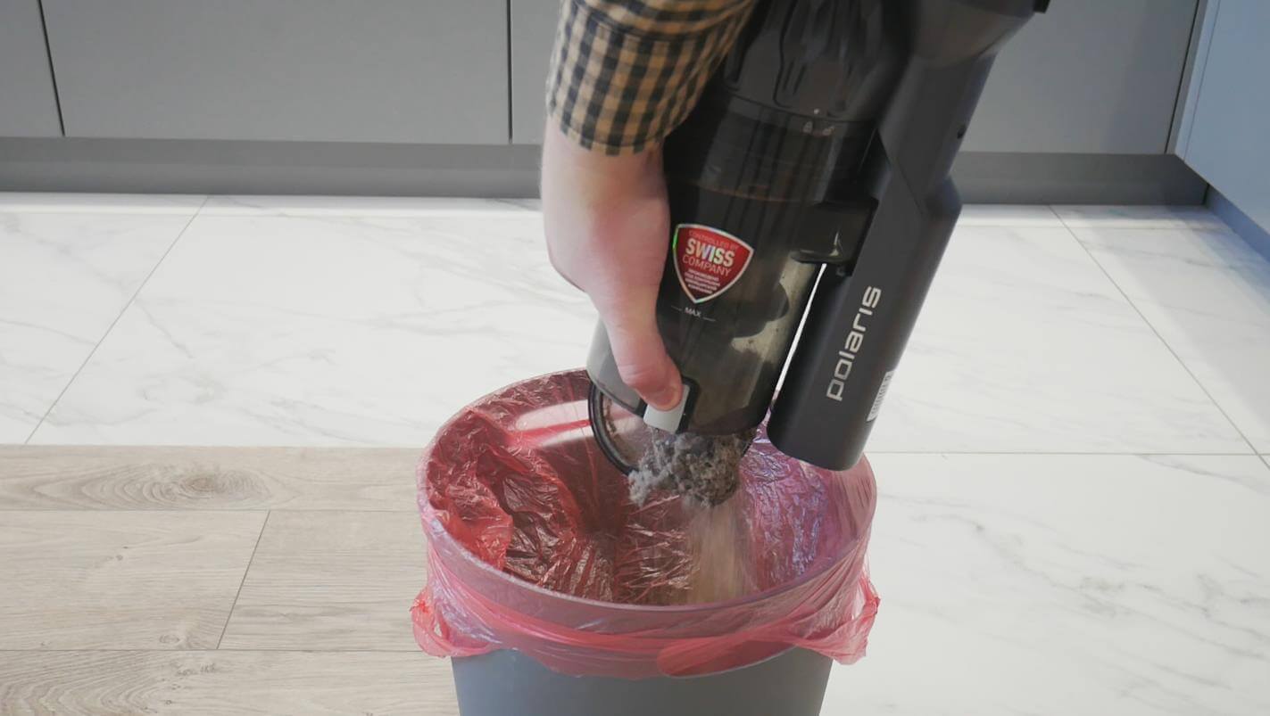 Dulkių talpyklą lengva nuimti ją pasukant. Ją lengva ištuštinti paspaudus mygtuką apačioje. Dangtelis atsidaro apačioje, ir visas turinys išbyra. Dulkių talpykloje yra keturių pakopų filtravimo sistema, kurią sudaro ciklonas, tinklelis, putų filtras ir HEPA filtrai. Nėra nuimamo išpūtimo filtro. Surinkimas labai paprastas; prailginimo vamzdis ir pagrindinis antgalis turi mechaninius užraktus.