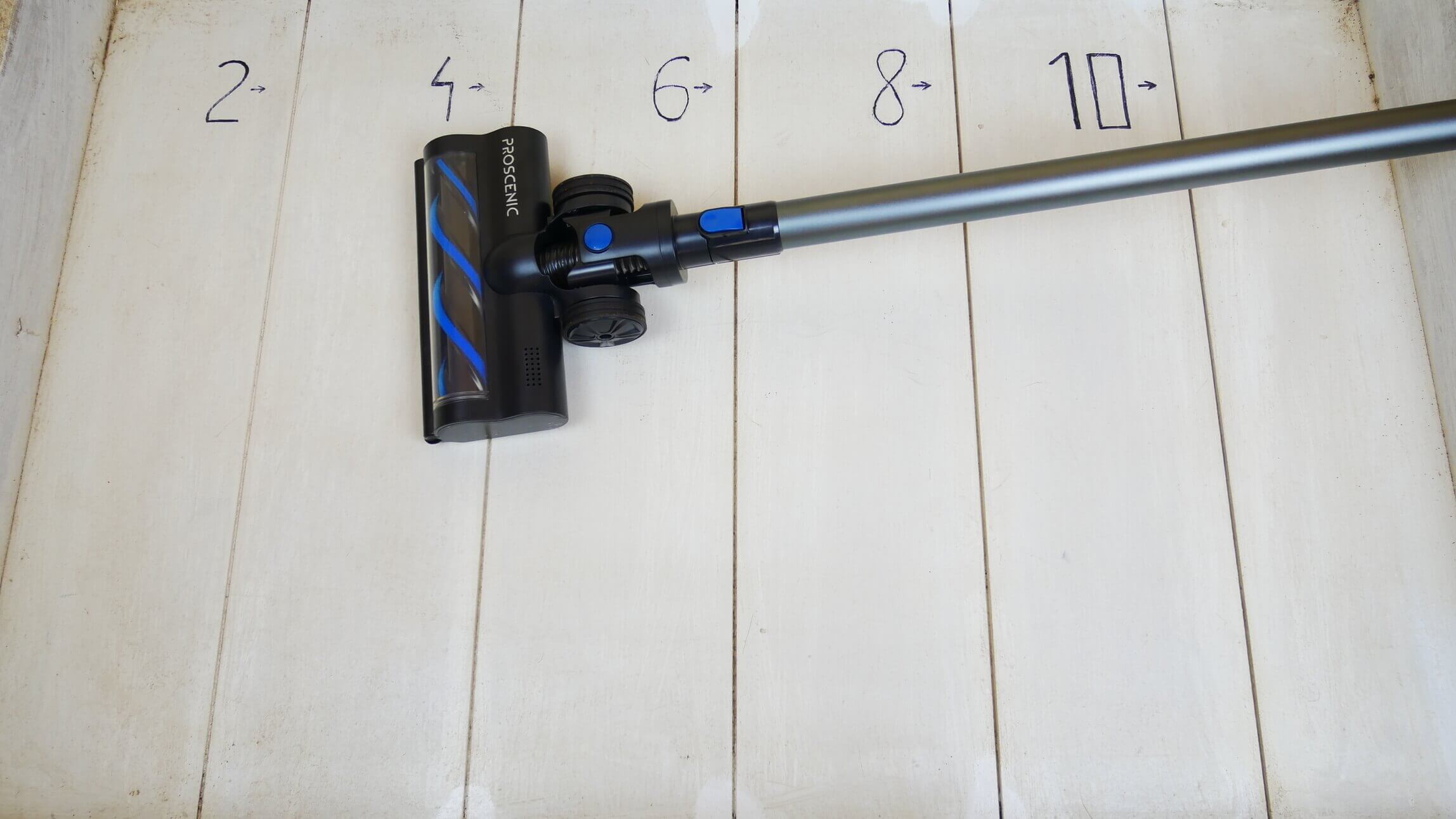 „Proscenic P11 Smart“ faktinė siurbimo galia yra didesnė nei vidutinė. Šis dulkių siurblys sugebėjo efektyviai išsiurbti šiukšles net iš 10 mm dydžio plyšių. To pakanka namų valymui ir švaros palaikymui.