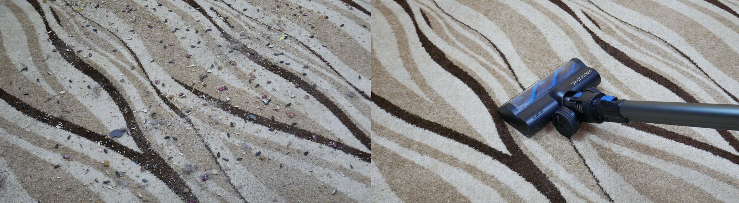 Šis vertikalus dulkių siurblys taip pat be jokių problemų valo kilimus. Tačiau yra problema, kurią minėjau savo P11 apžvalgoje.
