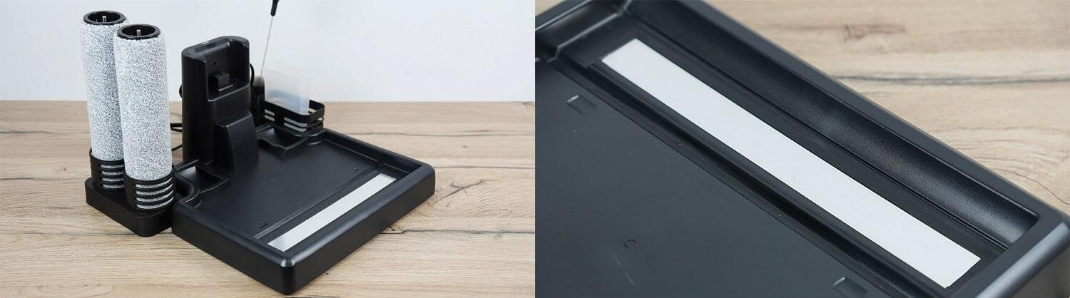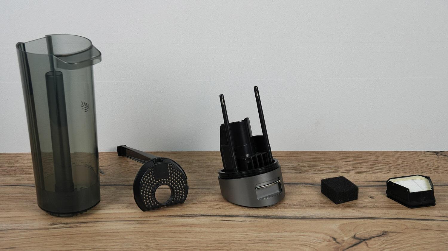 Virš valymo modulio yra talpi 900 ml talpos nešvaraus vandens talpykla. Joje įrengta filtravimo sistema su HEPA filtru ir putplasčio filtru. Vandens lygį stebi elektroninis jutiklis. Talpykloje taip pat yra šiurkštus filtras. Apskritai filtravimo sistema yra gera.
