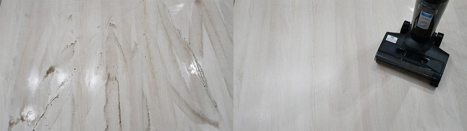 Išbandę šlapio/sauso valymo dulkių siurblį, patikrinome jo savaiminio valymo efektyvumą. Iš bako išpylėme nešvarų vandenį, antrą baką pripildėme švaraus vandens ir vėl padėjome dulkių siurblį ant pagrindo. Savaiminio valymo funkcija gerai neveikė esant tokiam dideliam užterštumui. Valymo modulio dangtis liko nešvarus, pats volelis nebuvo visiškai švarus, o už volelio liko šiek tiek šiukšlių. Tačiau realaus pasaulio bandymas buvo sudėtingas, ir kasdieniame gyvenime vargu ar leisite dulkių siurbliui pasiekti tokį lygį. Tačiau įprastomis namų sąlygomis, išplovus grindis, dulkių siurblys gerai išsivalo savaime. Bent jau taip pat gerai, kaip ir panašūs produktai.