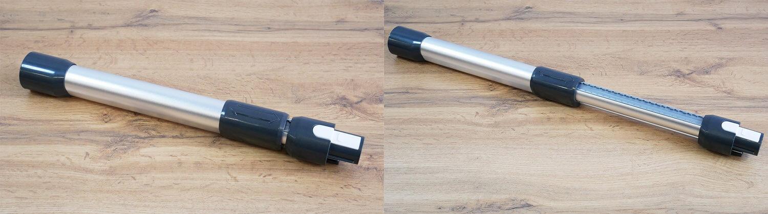 Teleskopinis prailginimo antgalis nusipelno ypatingo dėmesio. Antgalio, taigi ir viso dulkių siurblio, ilgį galite reguliuoti pagal savo ūgį. Tai labai patogu.