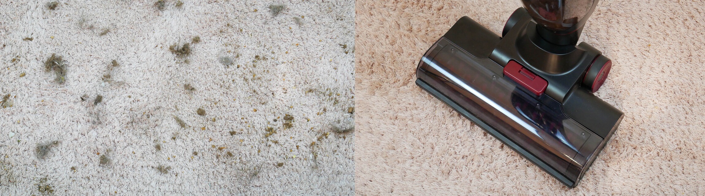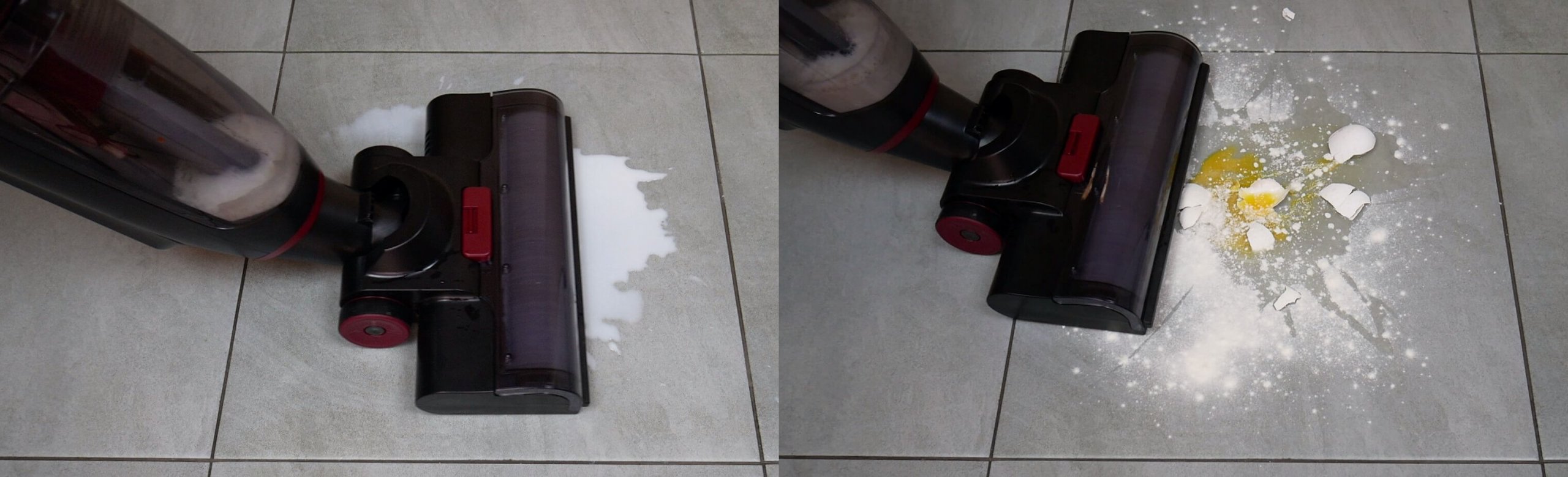 O dabar sunkiausias išbandymas: pridžiūvusių kavos ir padažo dėmių pašalinimas. Šį kartą į švaraus vandens baką įpyliau specialaus valiklio. Tačiau net ir su juo dulkių siurbliui prireikė maždaug 10 minučių, kad pašalintų dėmes. Todėl sunkiai pašalinamas dėmes gali būti sudėtinga pašalinti, nors net ir rankomis tokias dėmes nėra lengva pašalinti.