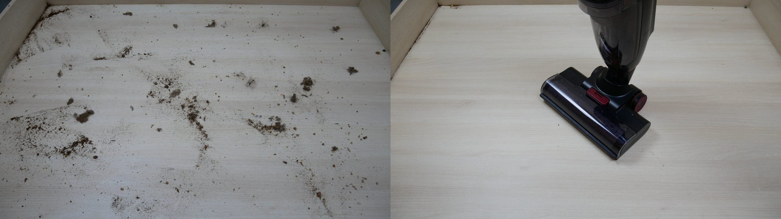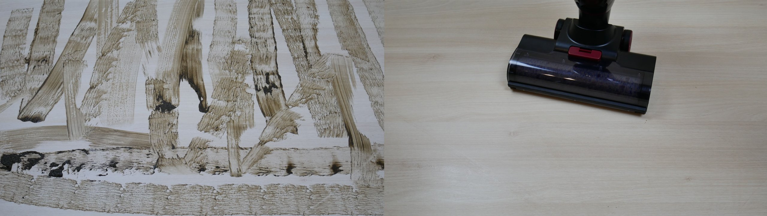 „REMEZair RMVC-553“ taip pat puikiai atlieka nešvarumų šalinimo darbą nuo grindų. Vienintelė problema, kaip minėta anksčiau, yra ta, kad šis dulkių siurblys negali kruopščiai išvalyti ploto palei grindjuostę, nes volelis nepasiekia įrenginio krašto. Tai daugelio vertikalių šlapio valymo dulkių siurblių problema.