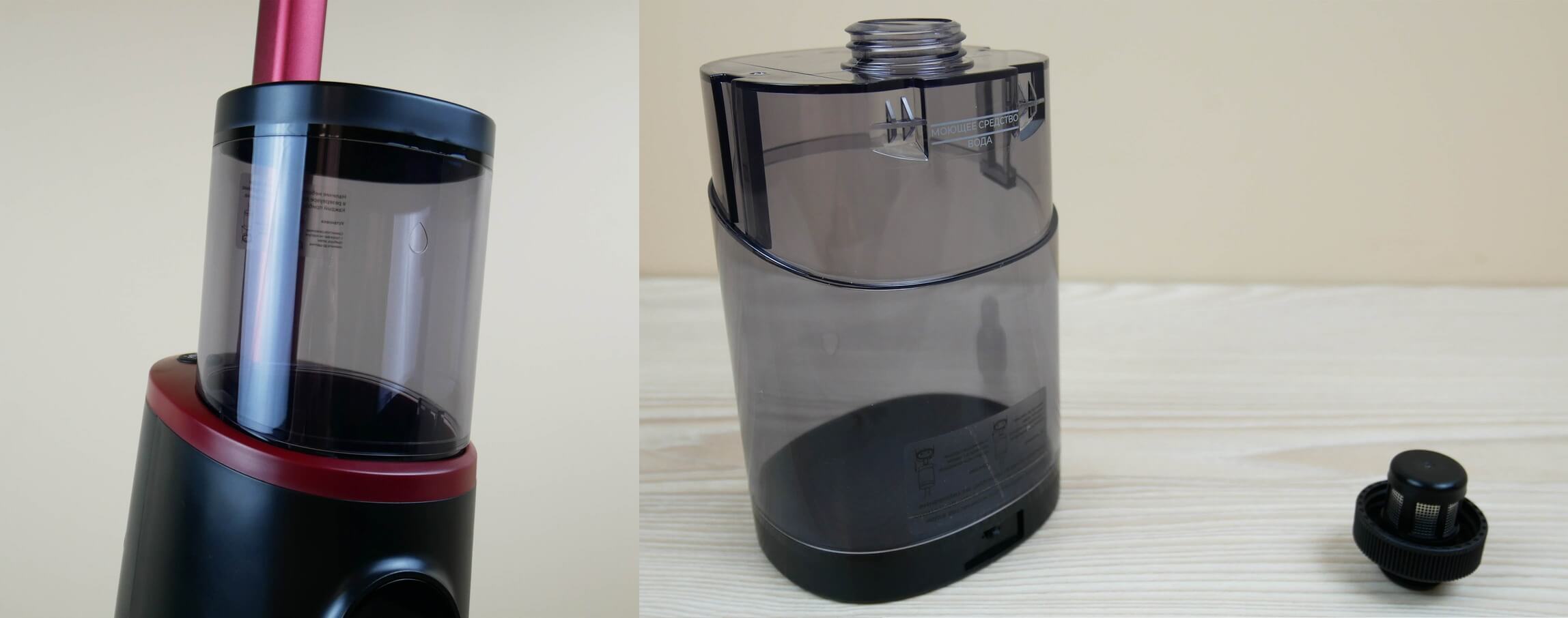 Virš valymo modulio yra nešvaraus vandens bakas. Viduje sumontuotas plaunamas HEPA filtras su tinkleliu. Vietoj plūdės sistemos skysčio lygis kontroliuojamas jutikliais.
