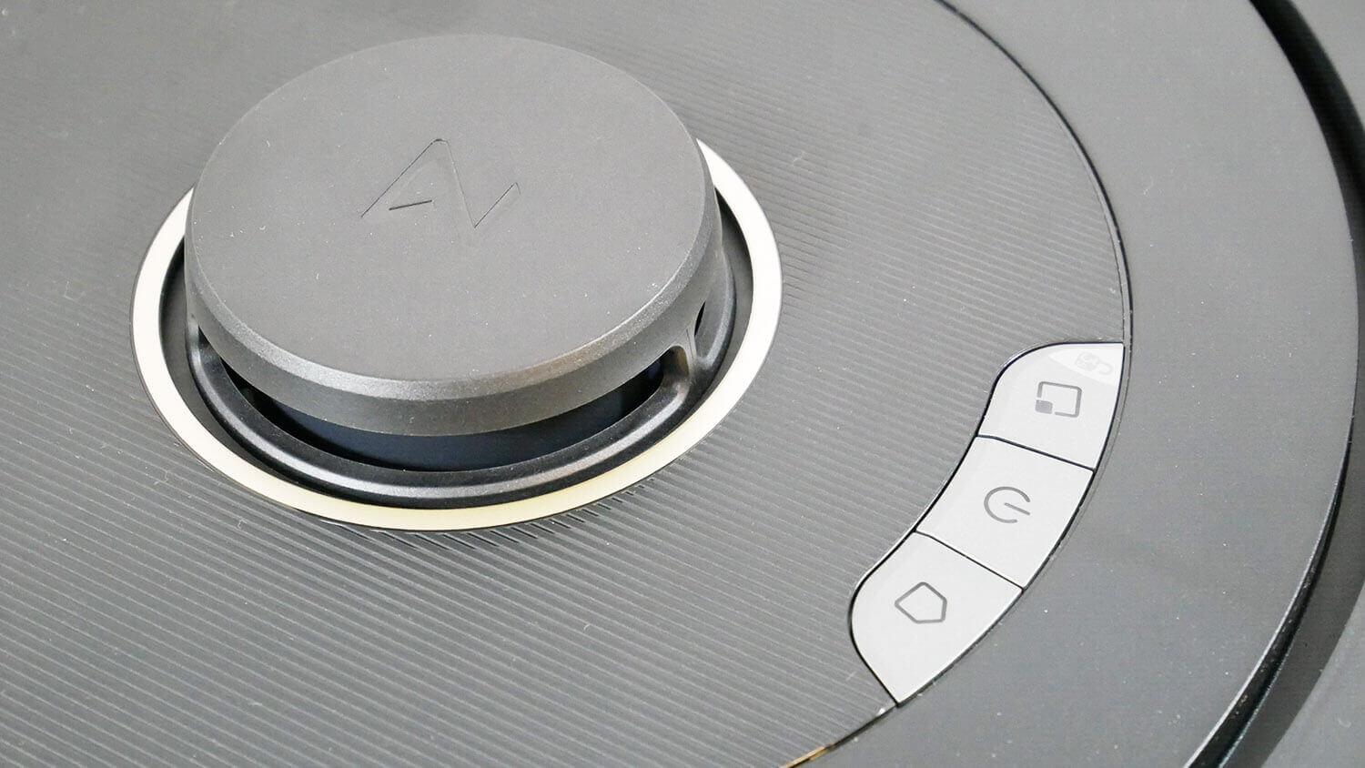 Viršutiniame valdymo skydelyje yra trys mechaninio valdymo mygtukai. Navigacijai skirtas lidaras. Jame yra mechaninis mygtukas, neleidžiantis robotui įstrigti po baldais.