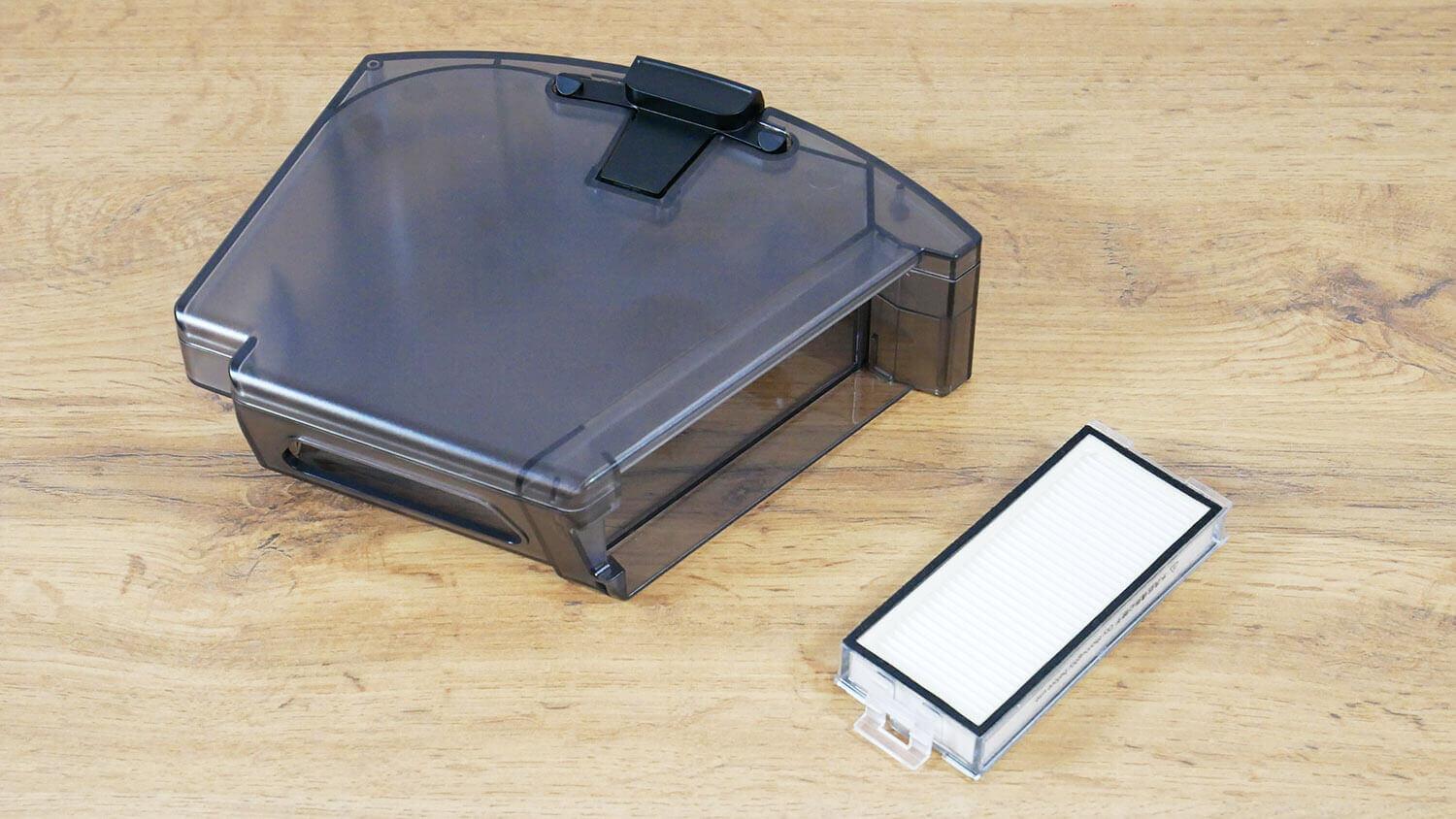Iškart po „nešvarumų bandymų“ išbandžiau „Roborock Q5 Pro Plus“ savaiminio valymo našumą. Pakartotinai paleidau jį kambaryje su dideliu kiekiu šiukšlių, kurias robotas be vargo surinko. Dulkių konteineris buvo sandariai supakuotas. Grąžinau robotą į stotelę ir pradėjau savaiminį valymą. Rezultatai buvo puikūs. Dulkių konteineris buvo visiškai švarus, tarp ar už turbo šepečių siurbimo angoje neliko jokių šiukšlių. Ankstesni modeliai turėjo panašią problemą dėl centrinio šepečio pagrindu veikiančio savaiminio valymo principo. Su dviem vamzdiniais šepečiais problemų nekilo; bandymas buvo sėkmingas!