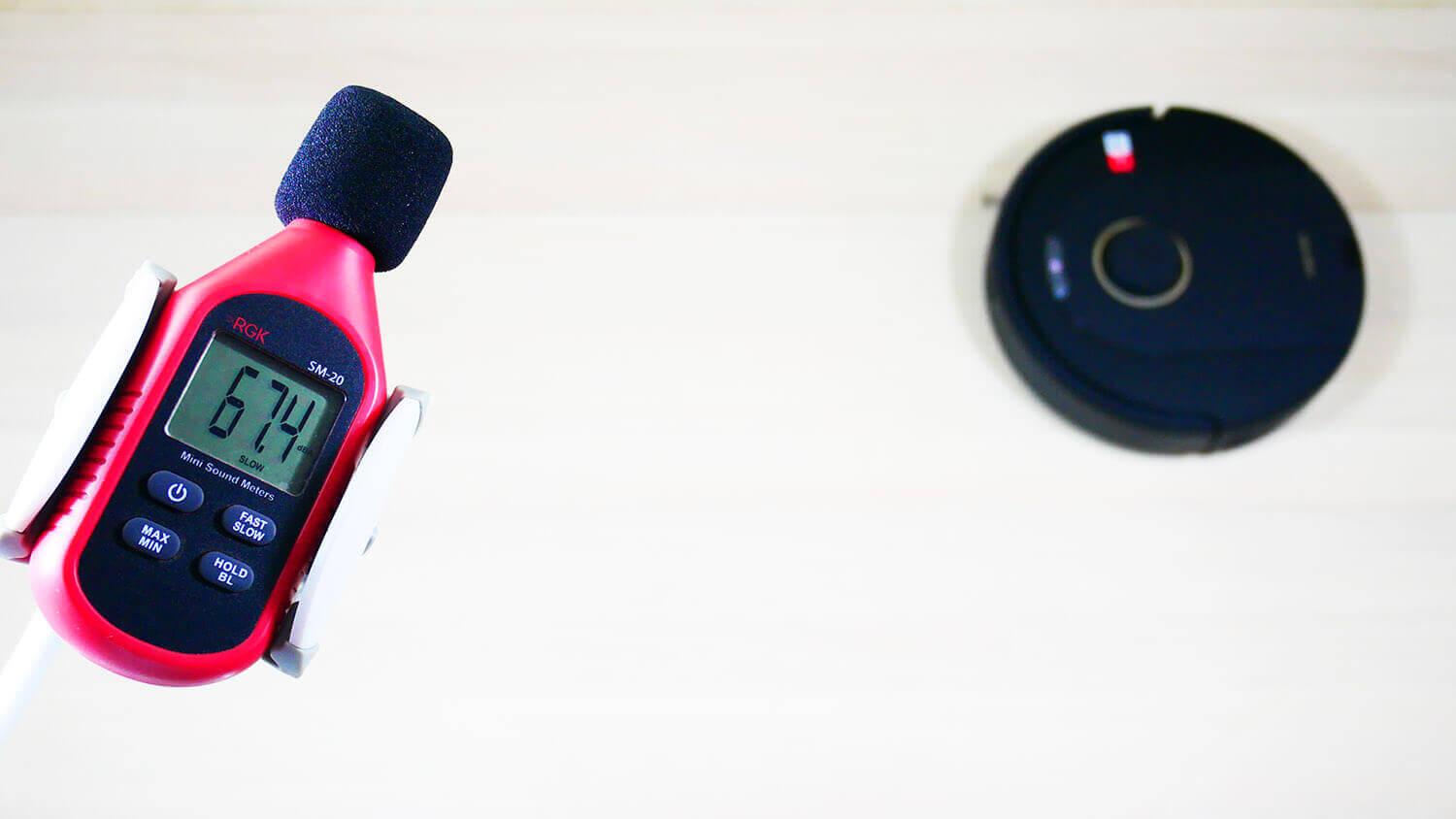 Galiausiai išmatuojame triukšmo lygį. Jis svyruoja nuo 60 iki 71 dB, priklausomai nuo galios lygio. Tai yra standartinis roboto triukšmo lygis.