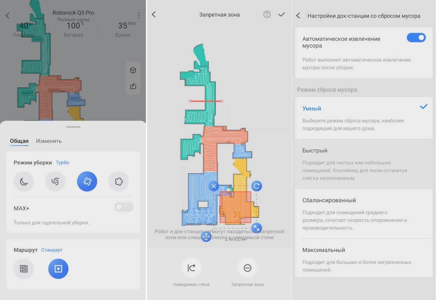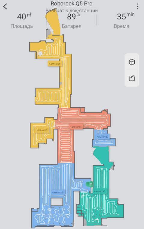 Kalbant apie navigaciją namuose, „Roborock Q5 Pro Plus“ valo kambarį po kambario, pirmiausia palei perimetrą, o tada vingiuotu būdu. Nėra neišvalytų vietų, valymo greitis yra didelis, o šis modelis turi puikią navigaciją!