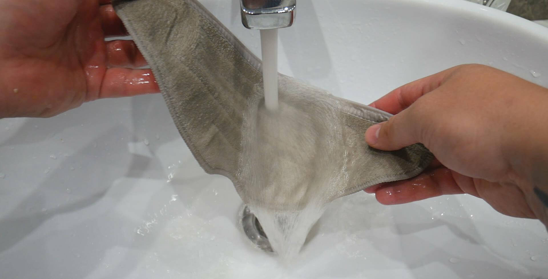 Išimame ir patikriname po tekančiu švariu vandeniu. Išbėga šiek tiek nešvarumų, bet tai nėra kritiška. Iš patirties galiu pasakyti, kad skalavimo rezultatas geras, ne prastesnis nei panašių produktų. Servetėlių skalavimo kokybei nusiskundimų nėra.