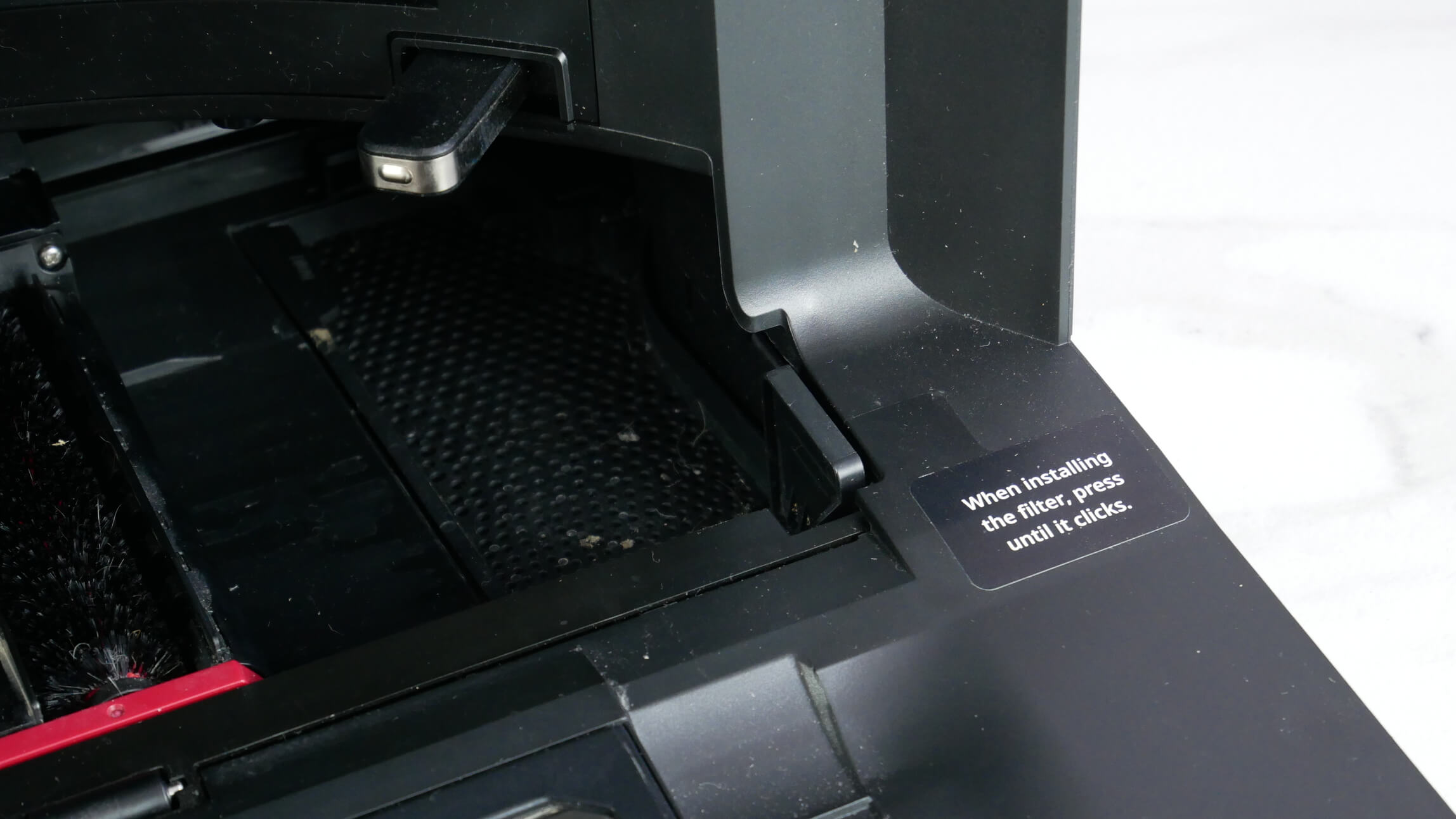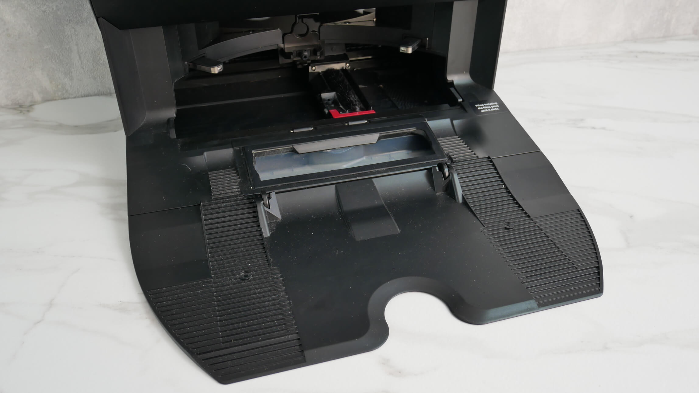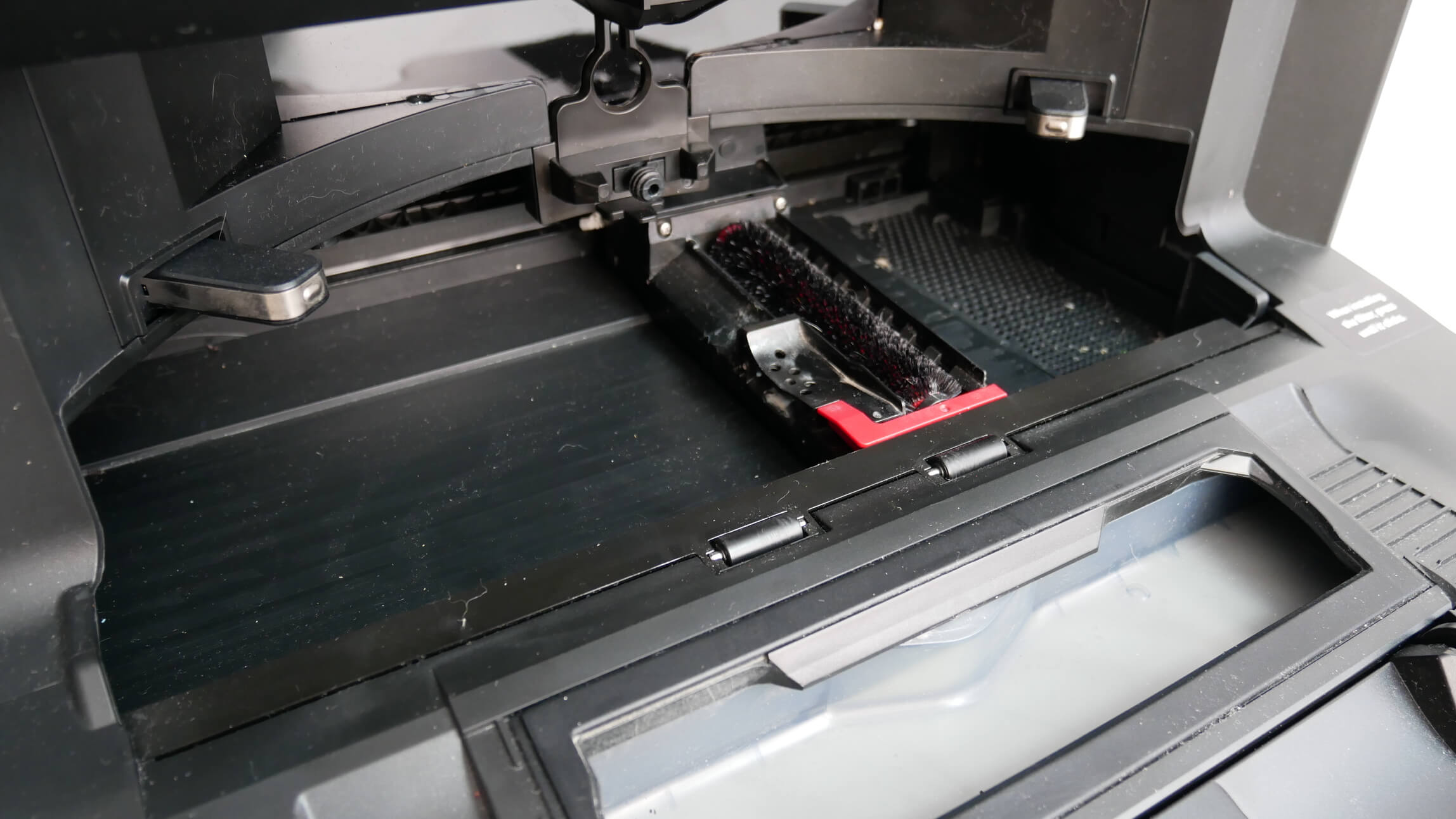 Šepečiai vos surinko plaukus ar kailį. Visos šiukšlės buvo surinktos dulkių konteineryje. Paleidome savaiminio valymo procesą ir laukėme. Dėl to dulkių konteineryje liko nemažai šiukšlių. Vėl pradėjome savaiminio valymo procesą ir pamatėme, kad stotelė vis dar negali visiškai ištuštinti dulkių konteinerio. Aš net išėmiau šepetį ir patikrinau, ar viduje nėra nieko įstrigę. Siurbimo kanalas buvo laisvas.