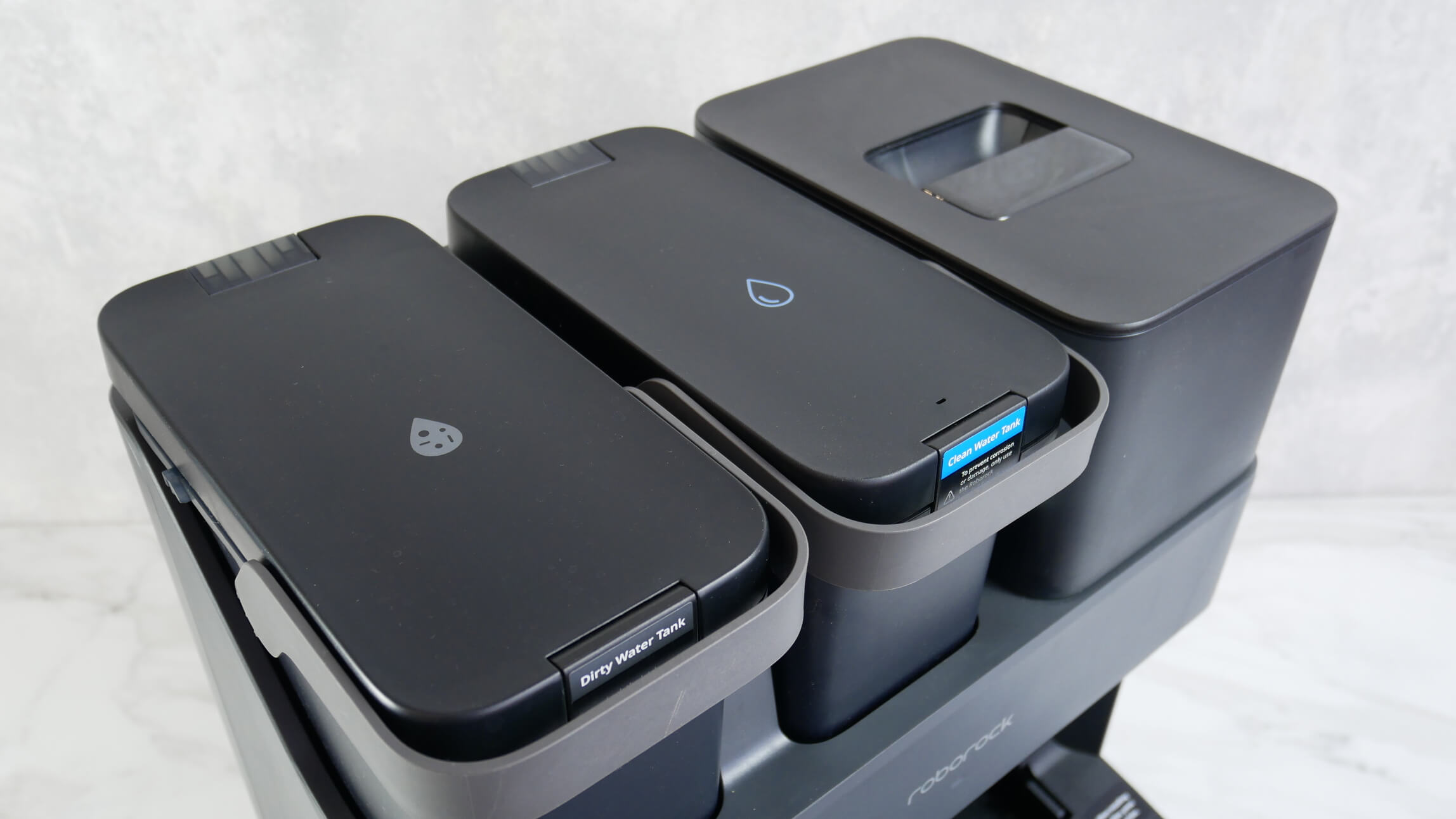 Viršutinėje stotelėje yra trys skyriai: nešvaraus vandens bakas, švaraus vandens bakas ir permatomas dangtelis, kuriame paslėptas šiukšlių maišas roboto dulkių siurblio savaiminio valymo ciklui. Švaraus vandens bako talpa yra 3 litrai, o nešvaraus vandens bako – 2,5 litro. Šiukšlių maiše telpa iki 2,5 litro sausų atliekų.