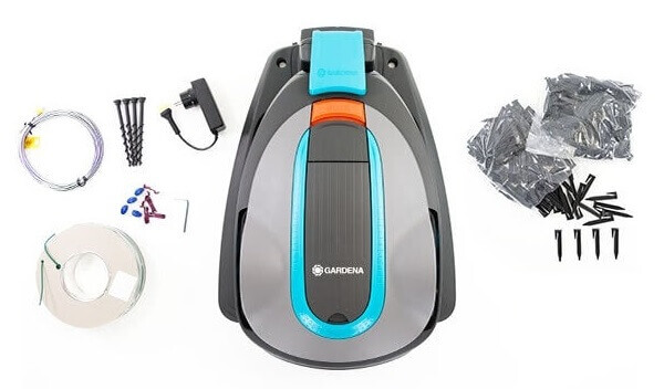 GARDENA „Sileno life 750“, „Sileno city 500“ ir „Sileno city 250“ robotinių vejapjovių pristatymo rinkinys iš esmės yra toks pat ir apima šiuos komponentus: