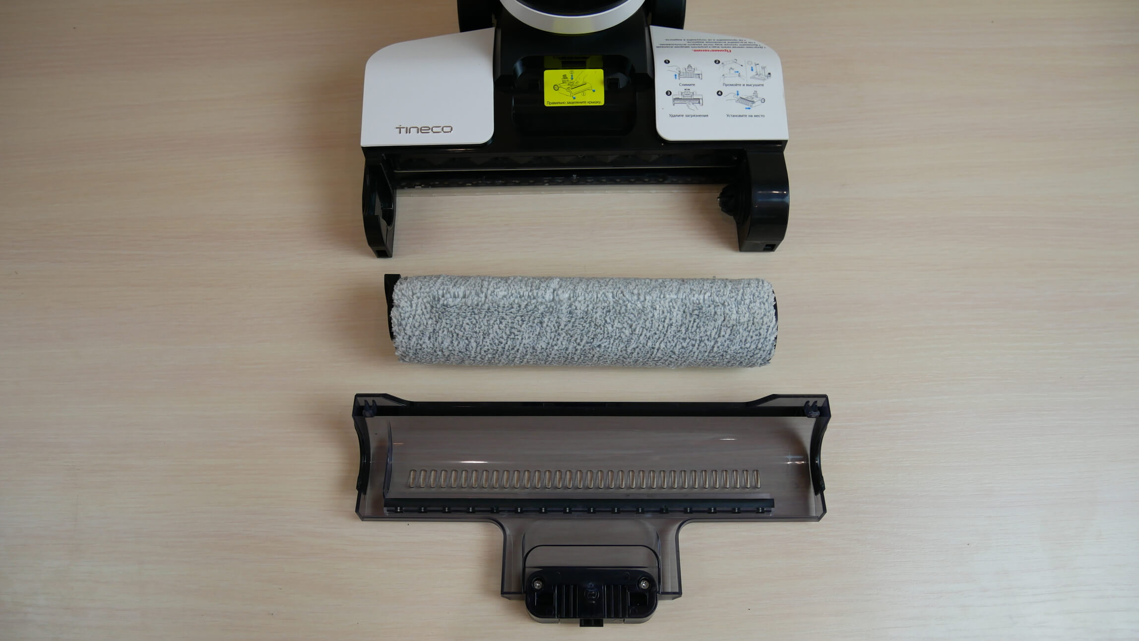 Dabar pažvelkime į volelio dizainą. Jį lengva nuimti valymui, kai reikia. Konstrukcijos kokybė gera. Papildomas skaidrus dangtelis leidžia vizualiai įvertinti volelio būklę valymo metu.
