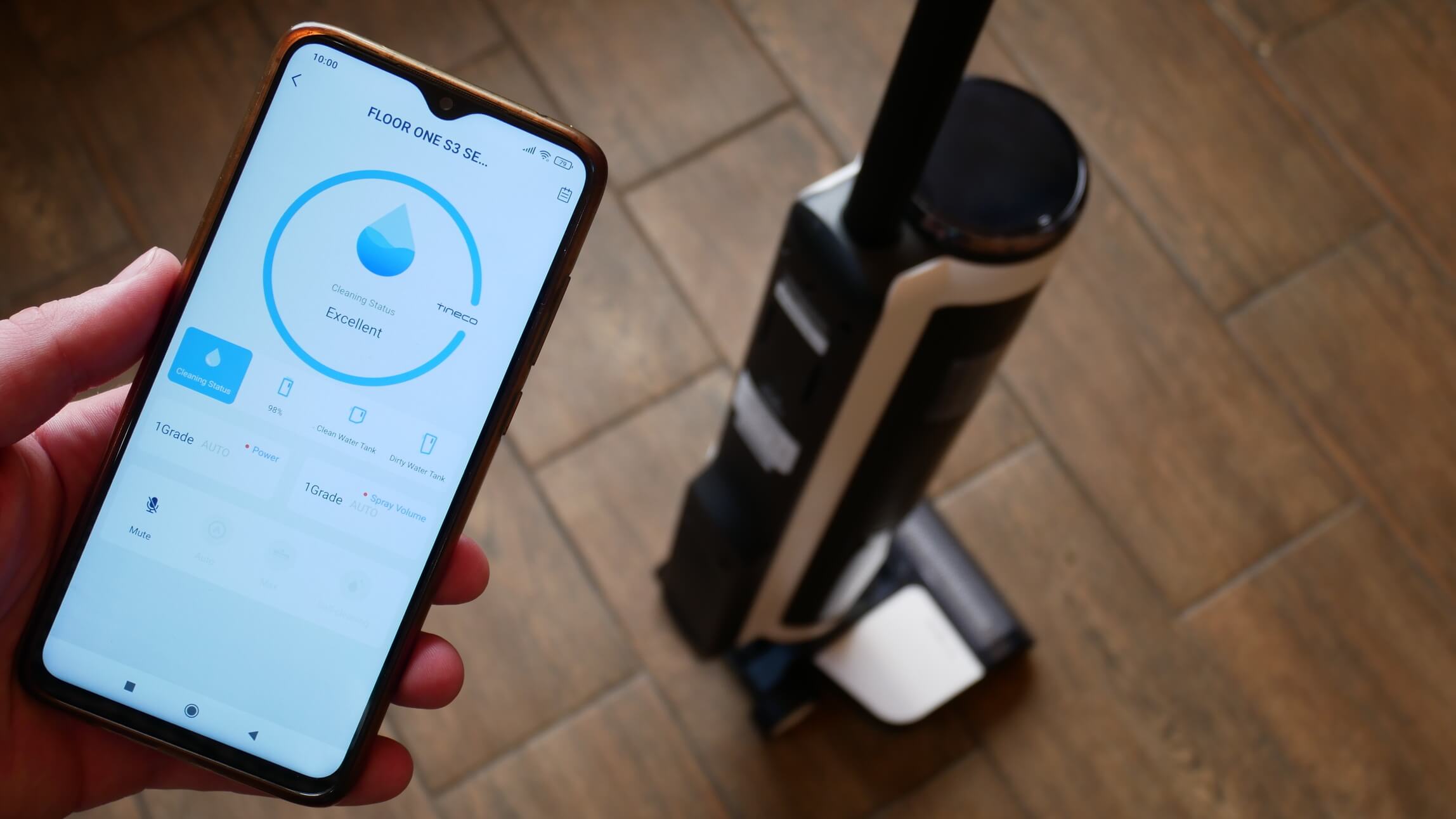 Taip pat galite naudoti programėlę, kad inicijuotumėte dulkių siurblio savaiminio valymo procesą ir, jei reikia, pasirinktumėte maksimalų arba automatinį valymo režimą. Mano nuomone, rankiniams dulkių siurbliams programėlės iš tikrųjų nereikia, ir iš esmės galite peržiūrėti ir reguliuoti beveik viską neprisijungdami prie išmaniojo telefono. Vienintelė išimtis yra galios ir vandens srauto lygio reguliavimas. Mygtukas ant dulkių siurblio korpuso pasirenka tik vieną iš dviejų valymo režimų, o lankstesni nustatymai galimi tik per išmanųjį telefoną, bet tai nėra ypač svarbu. Automatinis režimas iš esmės viską atlieka už jus.