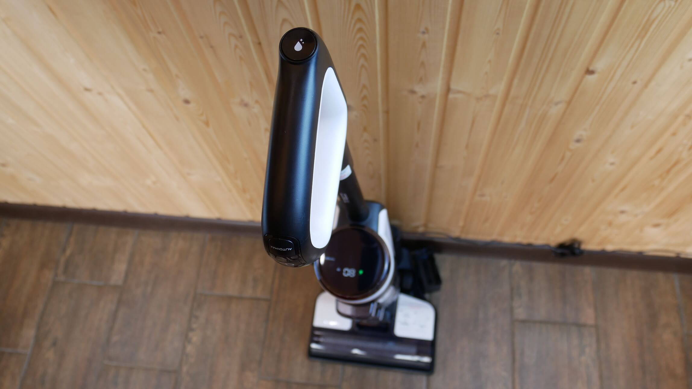 Galiausiai norėčiau atkreipti dėmesį, kad „Tineco Floor One S3“ palaiko vertikalų parkavimą. Tai labai patogu, nes prireikus aptarnauti konteinerius ar centrinį šepetį, tiesiog perkelkite dulkių siurblį į vertikalią padėtį, ir jis automatiškai liks ant grindų.