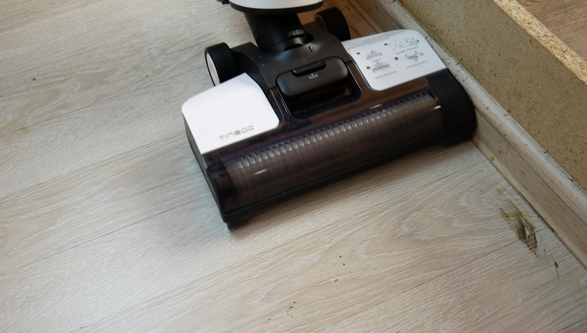 Vienintelis trūkumas yra tas, kad „Tineco Floor One S3“ dėl savo konstrukcijos neišvalo nedidelio grindų ploto palei grindjuostę. Svarbu tai turėti omenyje.
