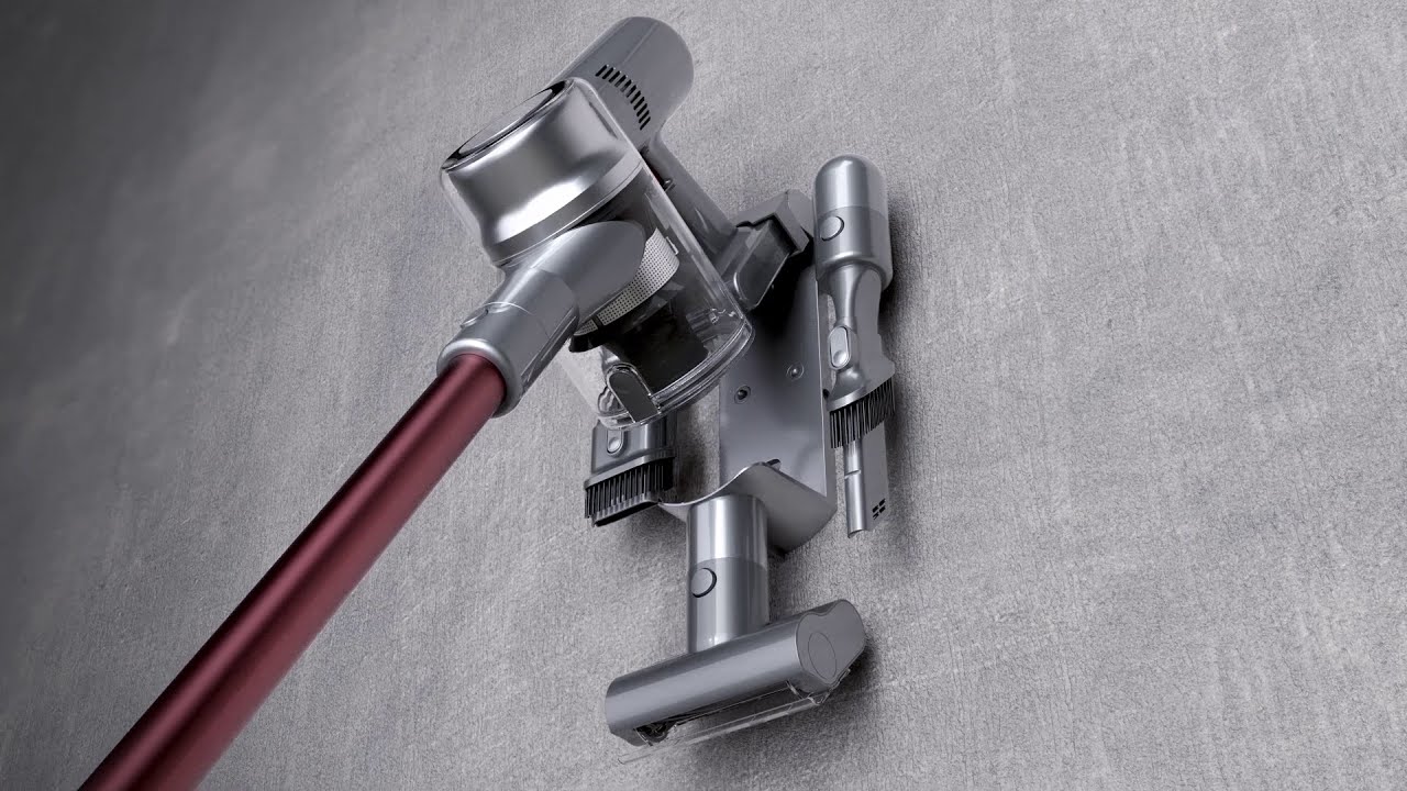 Vienas ne pats idealiausias aspektas, kurį norėčiau atkreipti dėmesį, yra mūsų belaidžio rankinio dulkių siurblio laikiklis – jis skirtas tvirtinti prie sienos varžtais. Deja, tai ne visada patogu, nes nėra „Velcro“ ar kitų saugesnių tvirtinimo būdų. Kita vertus, laikiklyje, be paties dulkių siurblio, galima laikyti tris šepečius. Laikiklis turi įkrovimo prievadą, tačiau viduje nėra jokios elektronikos. Tai tik laidūs gnybtai.