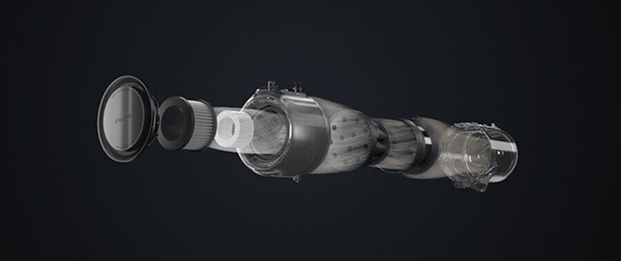 „Xiaomi Dreame V11“ belaidis rankinis dulkių siurblys turi dvylika organizuotų cikloninių srautų, kurie efektyviai filtruoja šiukšles ir smulkias dulkes, tuo pačiu sumažindami filtro užterštumą. Tai užtikrina tolygų siurbimą ir sumažina eksploatacinių medžiagų nusidėvėjimą. Jame yra penkių pakopų filtravimo sistema ir papildomas HEPA oro filtras, kuris neleidžia net mažiausioms dulkių ir žiedadulkių dalelėms (iki 0,3 mikrono) patekti į aplinkinį orą kartu su ištraukiamu oru. Visi filtrai yra plaunami.