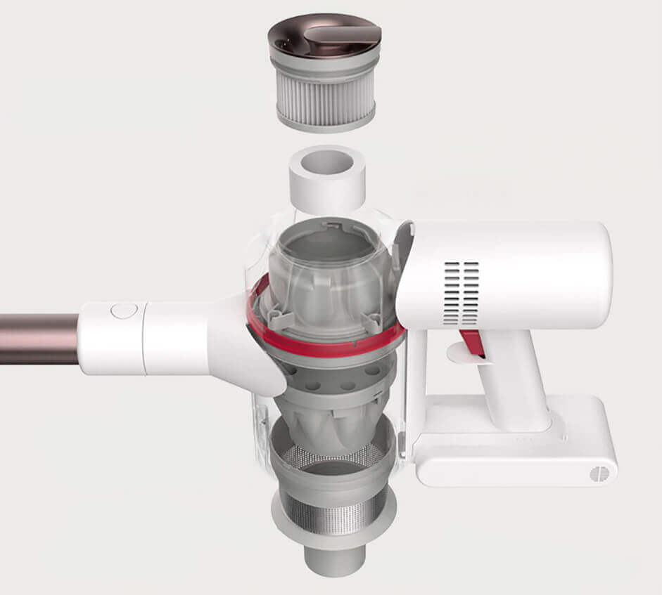 Dėl šios priežasties belaidis „Xiaomi Dreame XR“ rankinis dulkių siurblys susidoroja tiek su didelėmis šiukšlėmis ir naminių gyvūnėlių plaukais, tiek su mažesnėmis šiukšlėmis ir dulkėmis. Patekusios į vidų, šiukšlės praeina per penkių pakopų filtravimo sistemą, įskaitant HEPA filtrą, prieš patekdamos į 500 mililitrų dulkių surinktuvą. Dulkių surinktuvas yra kolba su žyma, nurodančia jo užpildymo lygį. Gamintojas teigia, kad jis sulaiko iki 99,99 % dulkių dalelių, kurių dydis siekia vos 0,3 mikrono.