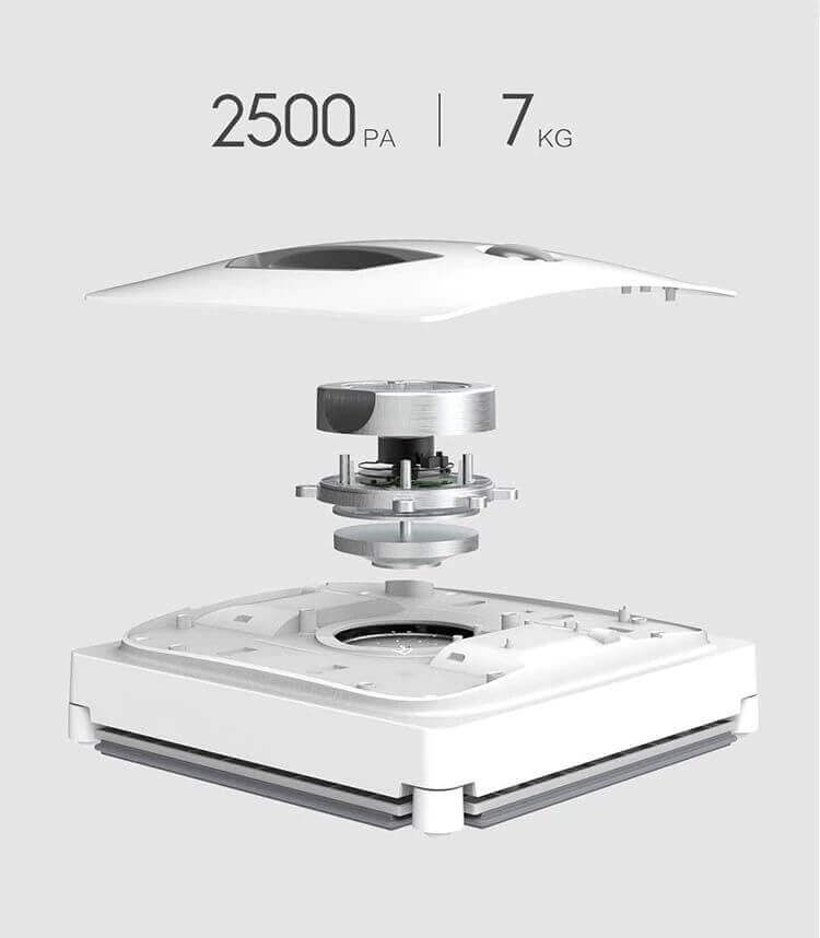 Įrenginyje taip pat yra galimybė reguliuoti siurbimo galią pagal valomo paviršiaus tipą. Tai įmanoma dėl įmontuotų „FREESCALE“ slėgio jutiklių. Maksimali siurbimo jėga yra 2500 Pa, kurią užtikrina 800 W bešepetis variklis, besisukantis 25 000 aps./min.
