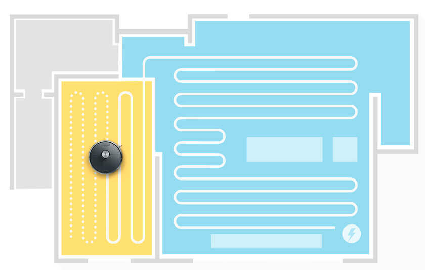 Taip pat svarbu atkreipti dėmesį, kad robotas nebeskirsto kambario į zonas pats, o juda iš kambario į kambarį iš anksto nustatytu, optimaliu maršrutu. Pavyzdys parodytas paveikslėlyje: