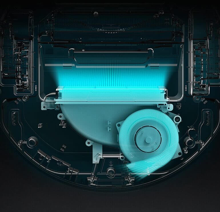 Robotas dulkių siurblys naudoja vieną šoninį ir centrinį šepečius nešvarumams ir dulkėms nuo grindų sušluoti ir surinktoms šiukšlėms per siurbimo kanalą nukreipti į dulkių konteinerį. Kadangi prietaisas pasižymi didele siurbimo galia (iki 2150 Pa) ir puikiai įveikia kliūtis, jis lengvai įveikia tiek plonus, tiek storus kilimus, pašalindamas ne tik šiukšles, bet ir naminių gyvūnėlių plaukus. Dulkių konteineryje yra plaunamas HEPA filtras, kuris tarnauja ilgiau nei standartinis filtras.