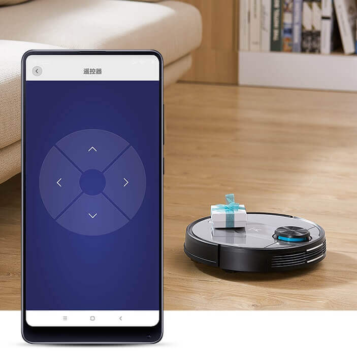 Komplekte nėra virtualios sienos ar nuotolinio valdymo pulto, tačiau šį trūkumą lengvai kompensuoja valdymas išmaniuoju telefonu naudojant specialią mobiliąją programėlę (ten pat galite apriboti valymo plotą).